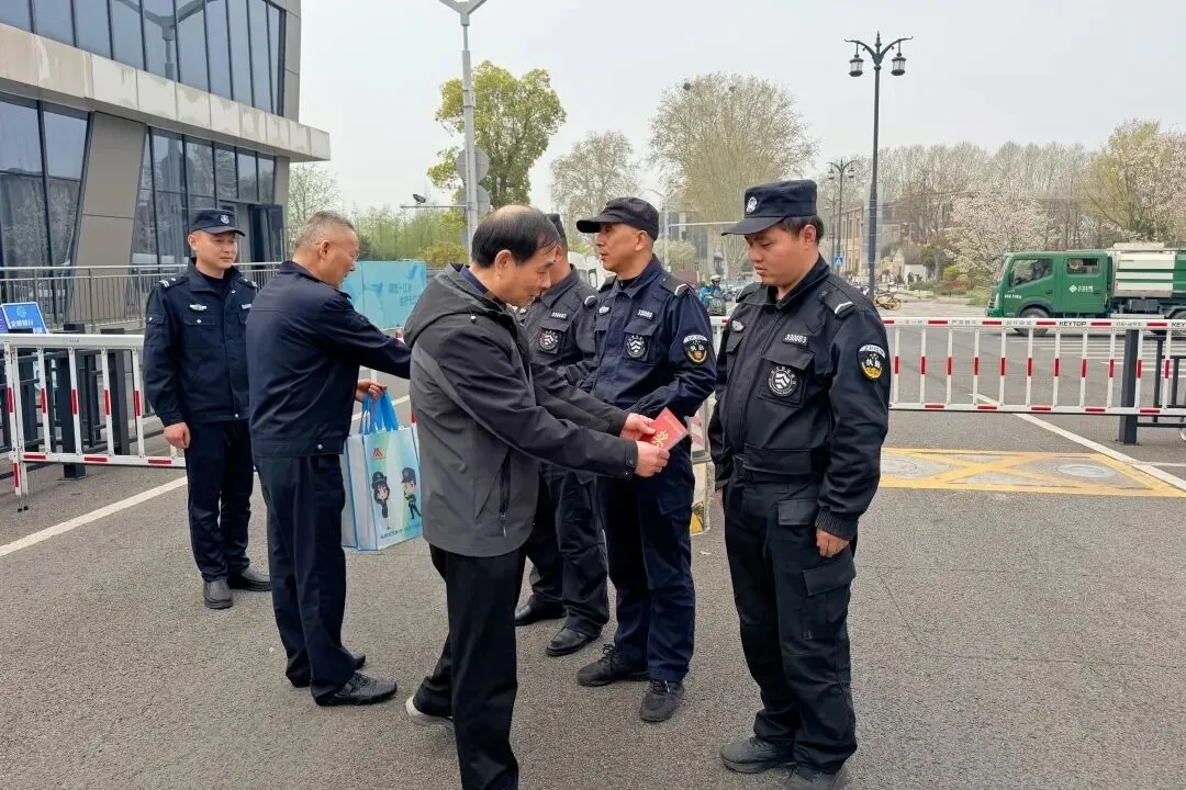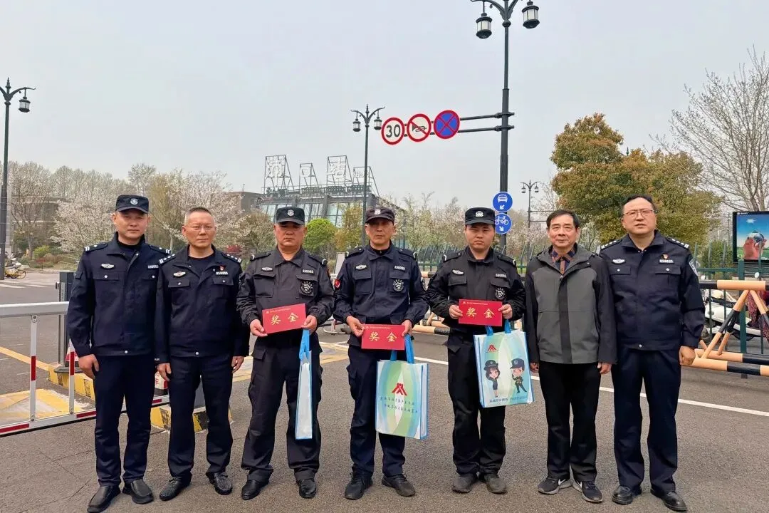 2026年4月1日上午,南京市江北新区见义勇为基金会副理事长陶其岭,秘书长陶文利等一行人到南京市保安服务有限公司大厂分公司(以下简称“大厂分公司”)驻扬子江生态公园驻勤点,为见义勇为的保安员王金发、凌华云、王龙龙送上“见义勇为专项”表彰。