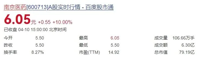 截至2026年4月12日,南京医药最新市值为79.19亿元人民币。