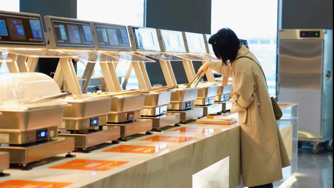 第一件是称重计量自助餐系统。传统自助餐按次收费,容易造成浪费。南京小牛的系统将计费精确到克,消费者想吃多少打多少,哪怕夹一颗青菜、一块红烧肉,都会按重量计费。一个客户反馈,换了这套设备后,食堂中午的泔水直接从三桶降到了一桶。“光盘率特别高。”马勋笑道。