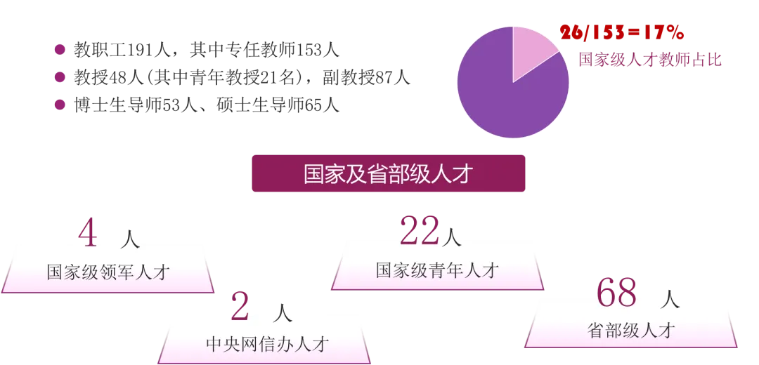 学院拥有一支综合素质好、学术水平高、具有开拓创新精神的教学科研队伍,拥有国家级高层次领军人才 4 人次和国家级青年人才 22 人次,在国内外学术界具有较广泛的学术影响力和良好的学术声誉。