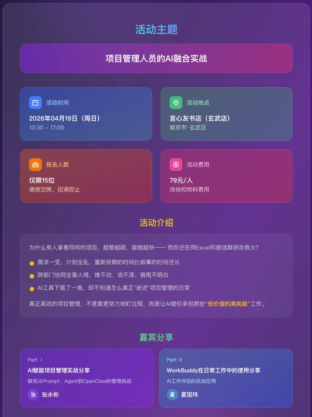 Part Ⅰ 分享主题:《AI赋能项目管理实战分享——破局从Prompt、Agent到OpenClaw的管理挑战》张永彬