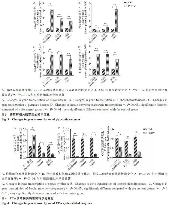 2.4 PEDV感染对仔猪小肠组织中糖酵解相关酶基因转录的影响