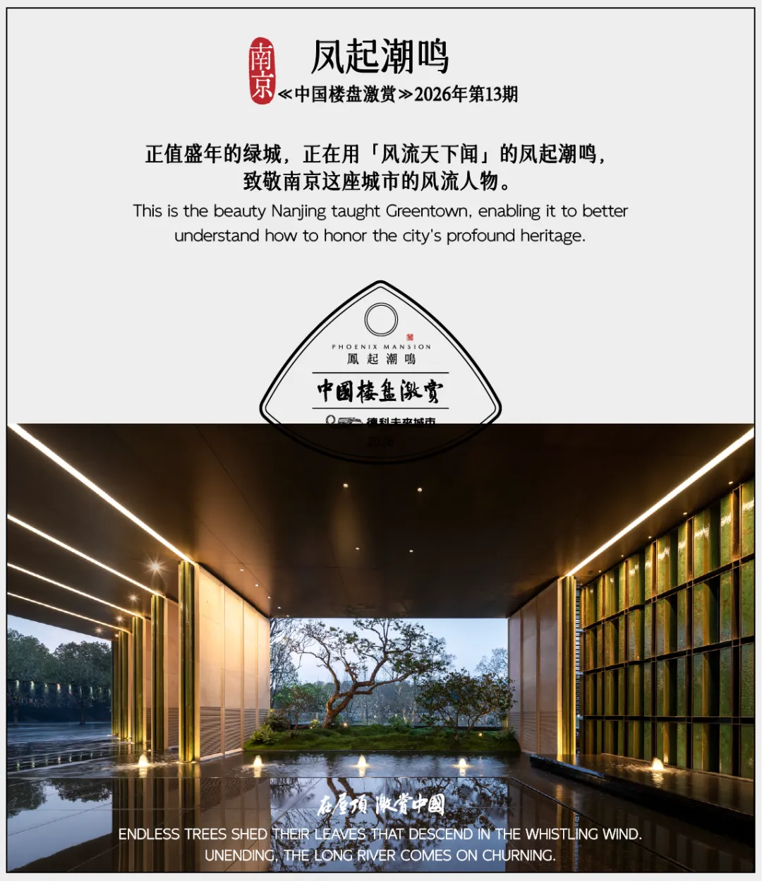 南京教给绿城的美,让绿城更懂如何去致敬中外闻名的南京大报恩寺琉璃塔,致敬李白诗中的金陵凤凰台,致敬李渔的南京芥子园。绿城眼中的南京,就如同李白眼中“风流天下闻”的孟浩然;正值盛年的绿城,正在用“风流天下闻”的凤起潮鸣,致敬南京这座城市的风流人物。