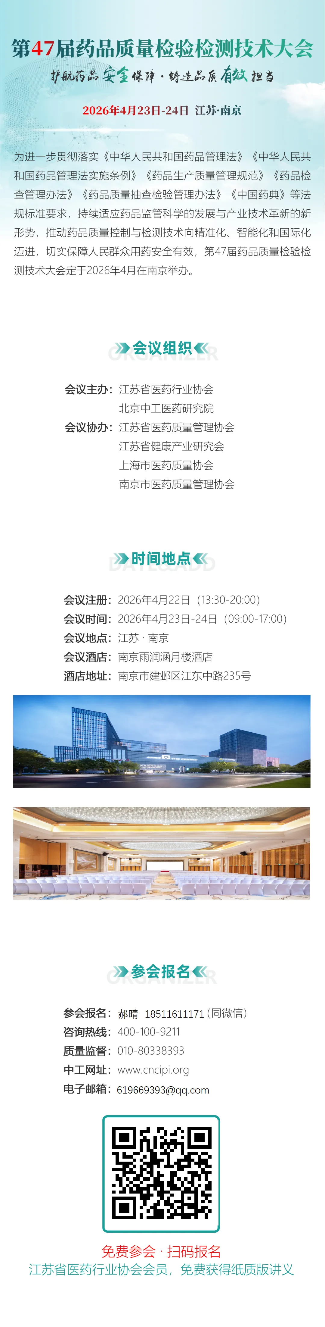对于药品质量控制领域的分析/检测仪器、试剂耗材与技术服务供应商,如果您在2026年有品牌推广与新品上市,中工会议将会是您优选的展示平台!精准的行业定位宣传,高流量的宣传渠道,塑造品牌影响力。