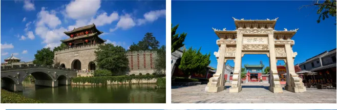 下午:到达天下第一庄【台儿庄古城】。古城位于京杭大运河的中心点,是著名的江北水乡、运河古城,也是二战遗存最多的抗战名城。城内留存的明清时期的古运河,是中国唯一一座东方古水城,可以乘舟遍游全城;