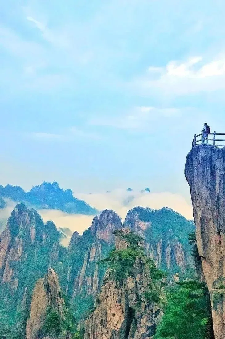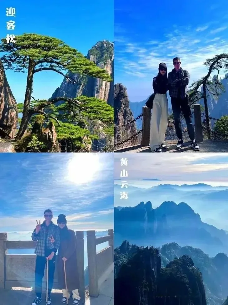 今天全天【黄山】游览;五岳归来不看山,黄山归来不看岳;黄山有五绝三瀑,五绝为:奇松、怪石、云海、温泉、冬雪;三瀑为:人字瀑、百丈泉、九龙瀑;