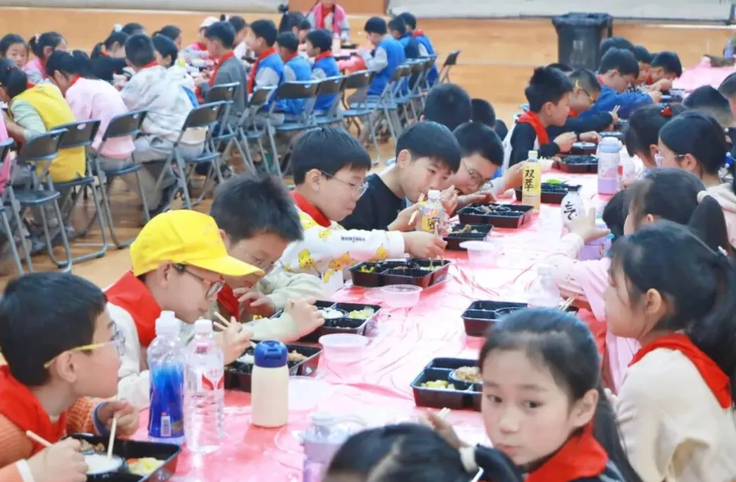 在食堂享用“水兵定制午餐”(参考海军日常饮食搭配)餐前进行“餐前训导”,懂得珍惜粮食。