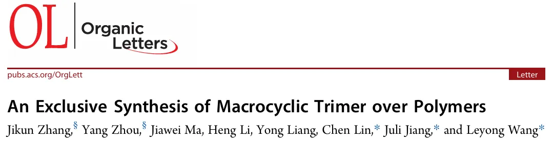 突破百年合成难题!南大团队实现无聚合物副产物的大环三聚体专一合成,登顶 Org. Lett.