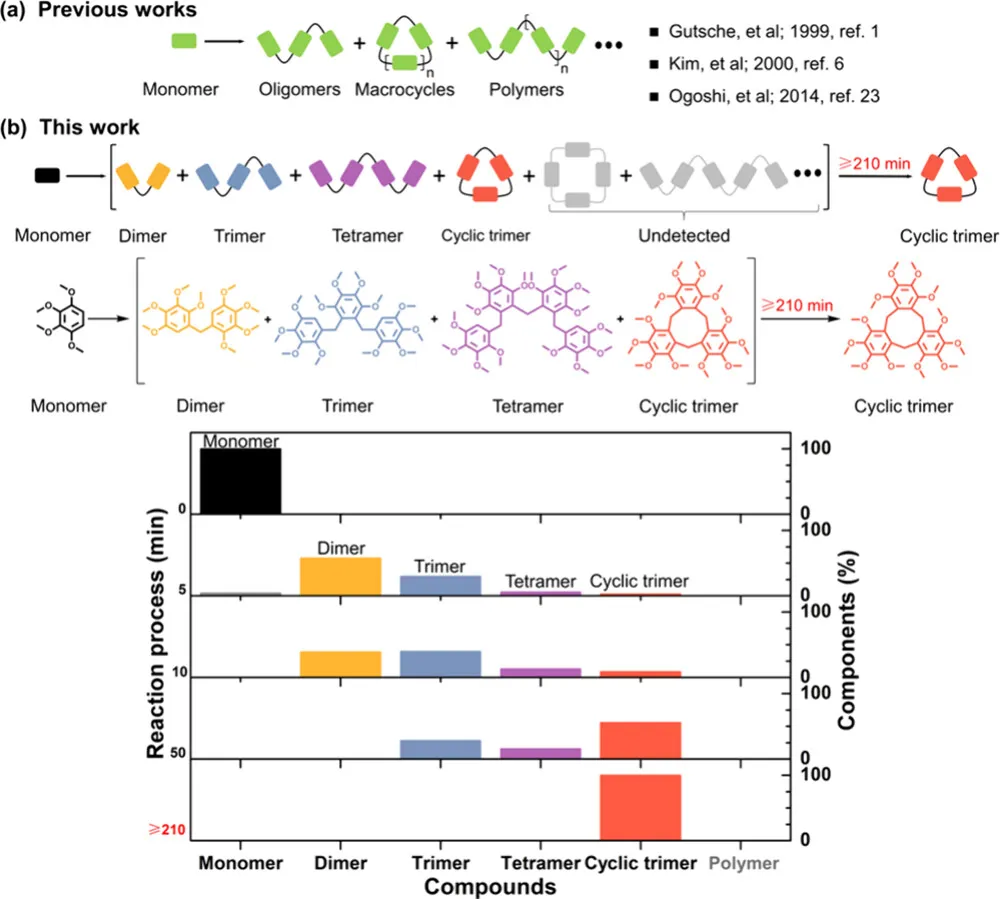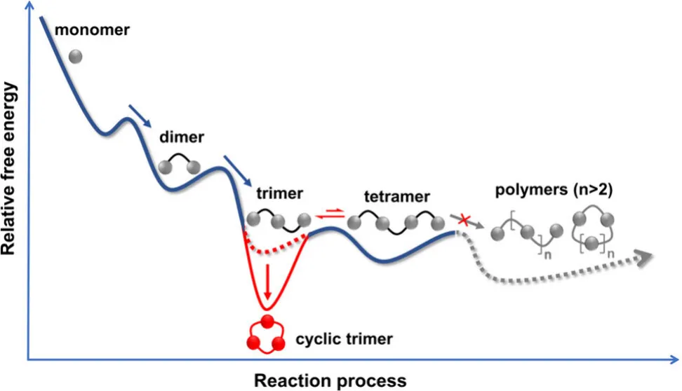 这一结果证实:所有线性低聚物都是活性中间体,而非副产物,最终都会定向奔赴热力学最稳定的大环三聚体。