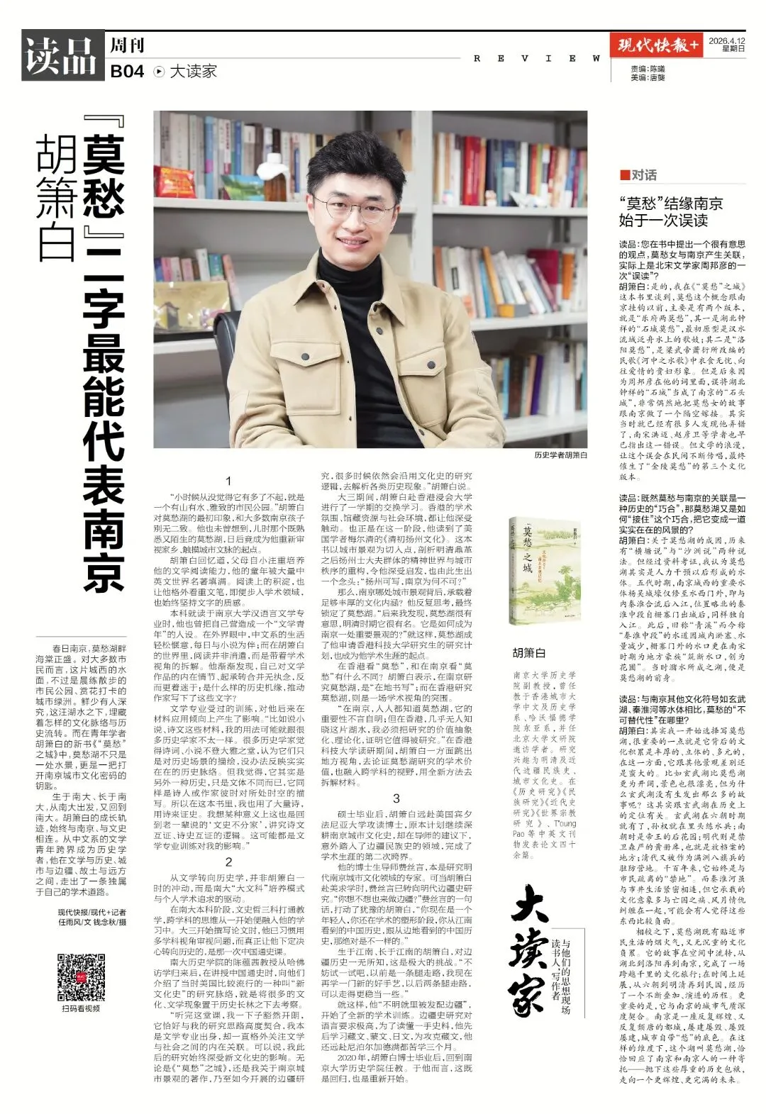 “听完这堂课,我一下子豁然开朗,它恰好与我的研究思路高度契合,我本是文学专业出身,却一直格外关注文学与社会之间的内在关联。可以说,我此后的研究始终深受新文化史的影响。无论是《“莫愁”之城》,还是我关于南京城市景观的著作,乃至如今开展的边疆研究,很多时候依然会沿用文化史的研究逻辑,去解析各类历史现象。”胡箫白说。