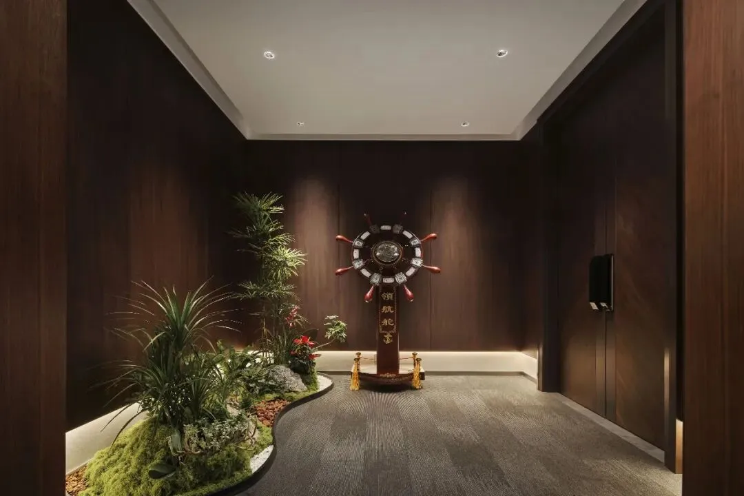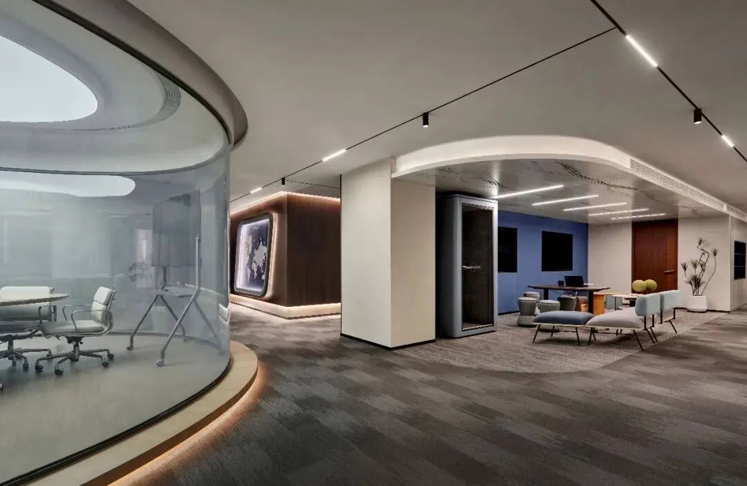 柔和自然光与舒适灯光结合,搭配人性化动线设计,让办公环境轻松高效,缓解工作压力。细节处融入航运主题软装与艺术装置,于无声处彰显企业底蕴,实现文化与功能的平衡。