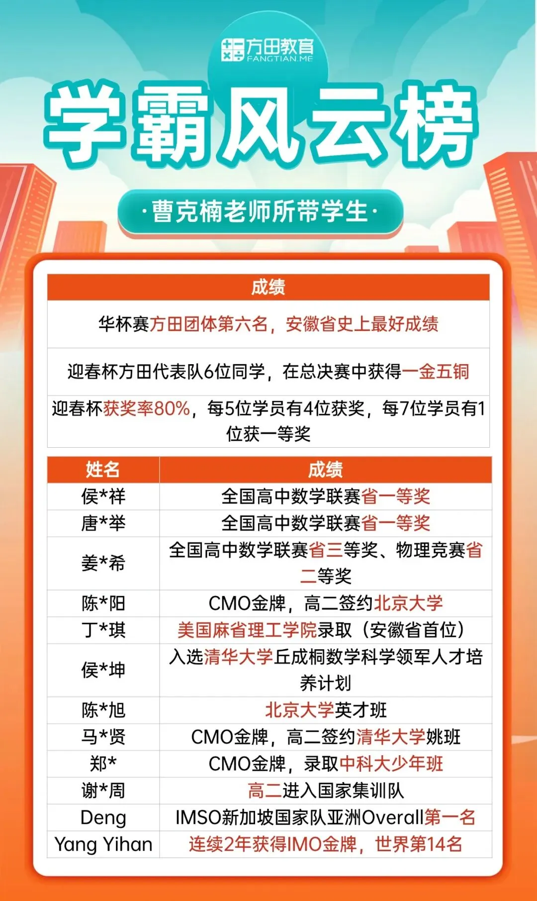 2016-2021年在国内教授小学奥数及中学数学竞赛,学生二百余人获得小学中学各个阶段奥数比赛决赛金牌,六十余人获得中国高中数学联赛省级一等奖,2021年培养出全国高中数学联赛安徽省队14人中的7人。