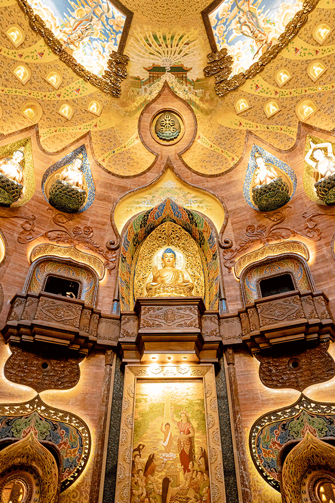佛顶宫以佛祖顶骨舍利供奉为主题,分为大穹顶和小穹顶两个部分,寓意外供养和内供养。佛顶宫利用原有矿坑建地宫,地下六层,地上三层,很是庄严气派。近年,释迦牟尼佛顶骨舍利将在牛首山被长期供奉,游客可于特殊佛教节日前往佛顶宫瞻礼。