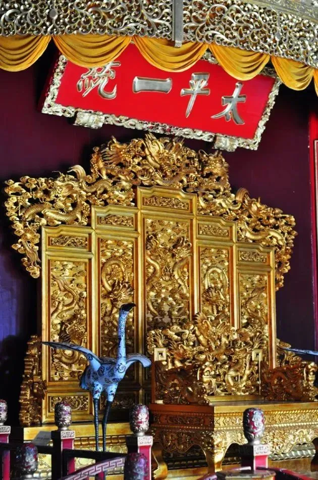 1912年1月1日,孙中山在这里就任中华民国临时大总统;以后的15年间,这里先后作为江苏总督府、副总统府等机构;1927年国民政府成立,这里成为国民政府办公地;抗日战争期间,这里先后沦为日军机关和汪伪政权机构所在地。抗战胜利后,这里仍为国民政府和总统府的办公地。时间的车轮带着我继续前行,顺延中轴线一直走,来到太平天国的权利中心。这里是典型的中式古色古香的建筑,细微之处彰显雍容华贵和至高权利。