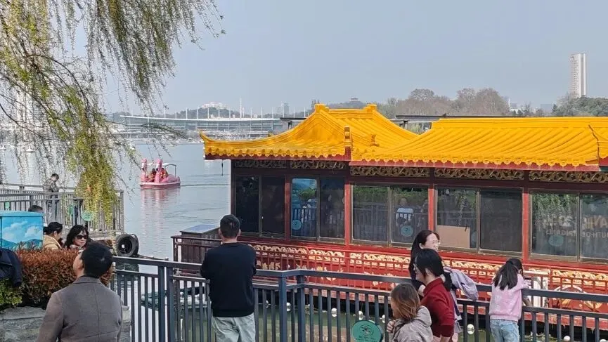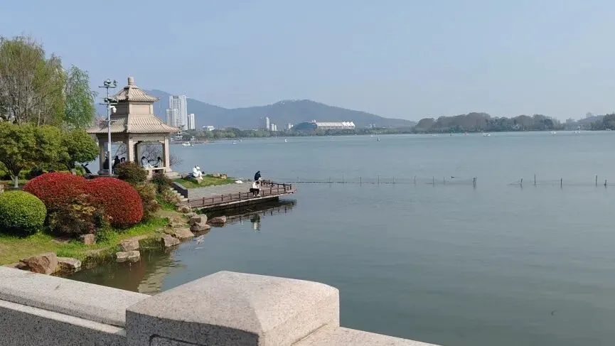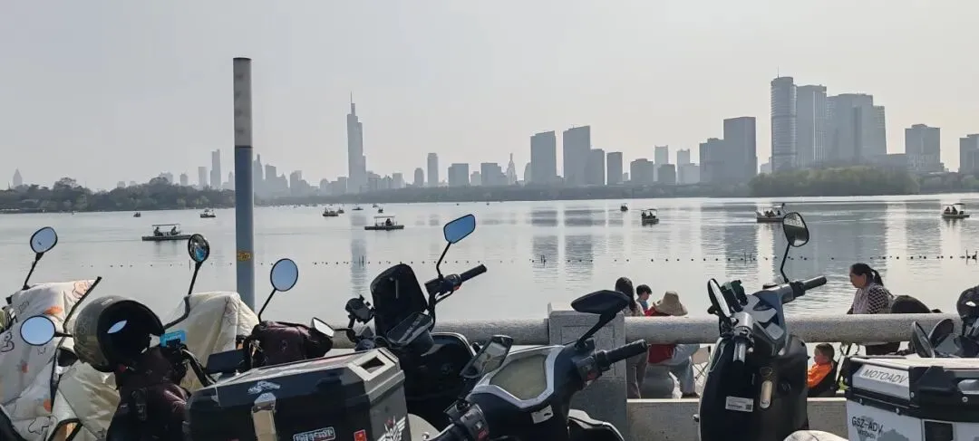从先锋书店出来,坐地铁到玄武门,步行几分钟就到了玄武湖。正午的湖面波光粼粼,远处的紫金山若隐若现。我没有选择坐观光车,而是沿着湖边慢慢走。湖边的柳树已经抽了新芽,风吹过来带着水汽,很舒服。