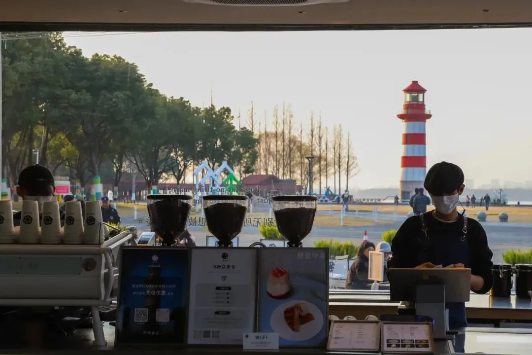 比如南京江心洲的ROCHO咖啡,从开业以来就是年轻人Citywalk的热门选择,甚至火成了打卡地标,每年吸引100万人来到江心洲,显然并不是只为了喝一杯咖啡。