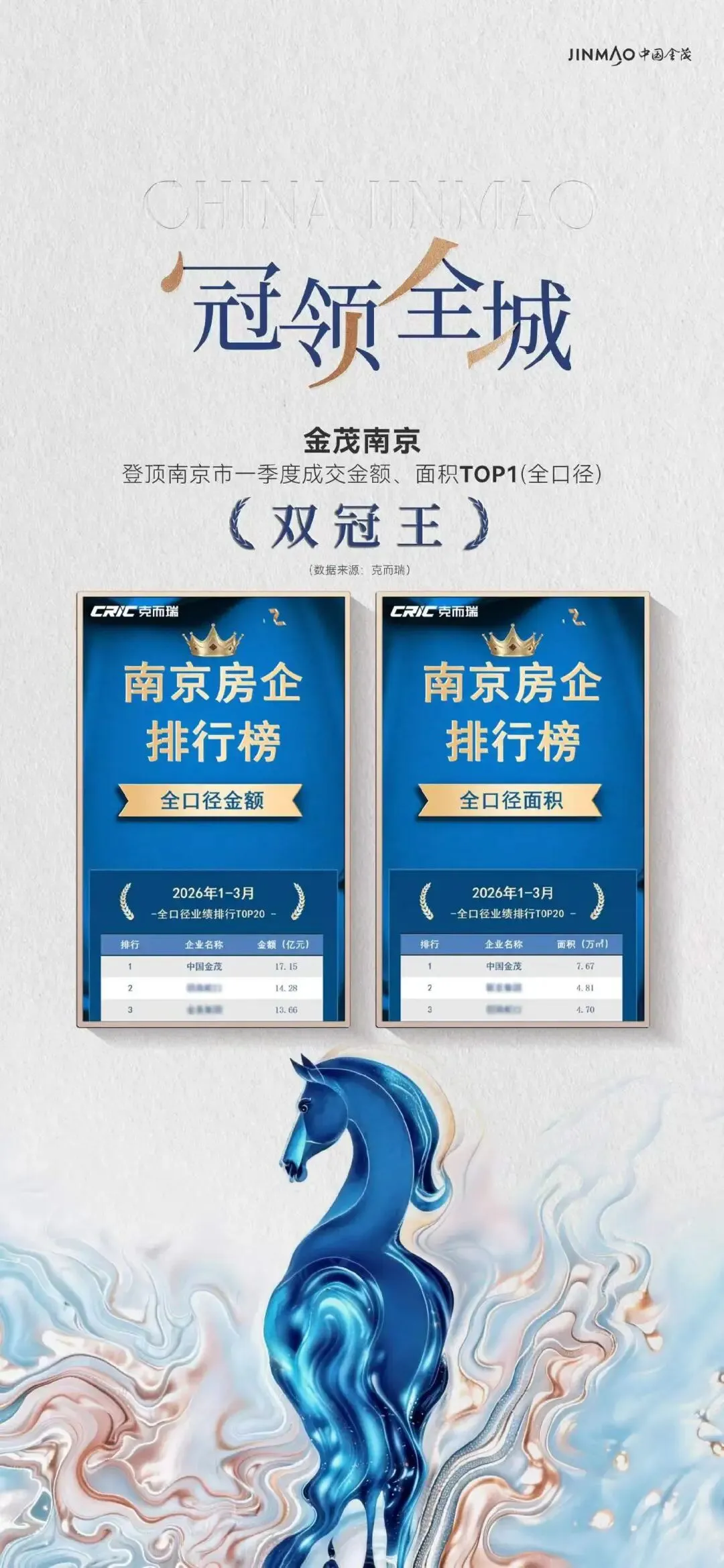 金茂南京,霸榜南京一季度成交金额、面积TOP1。