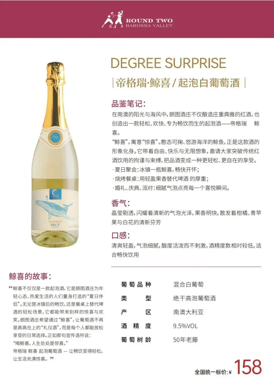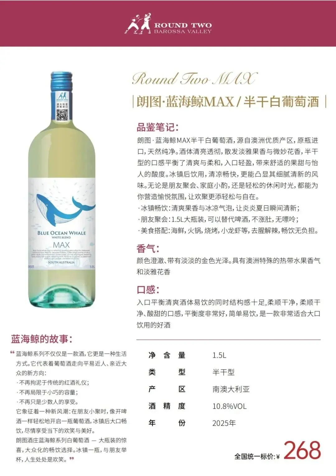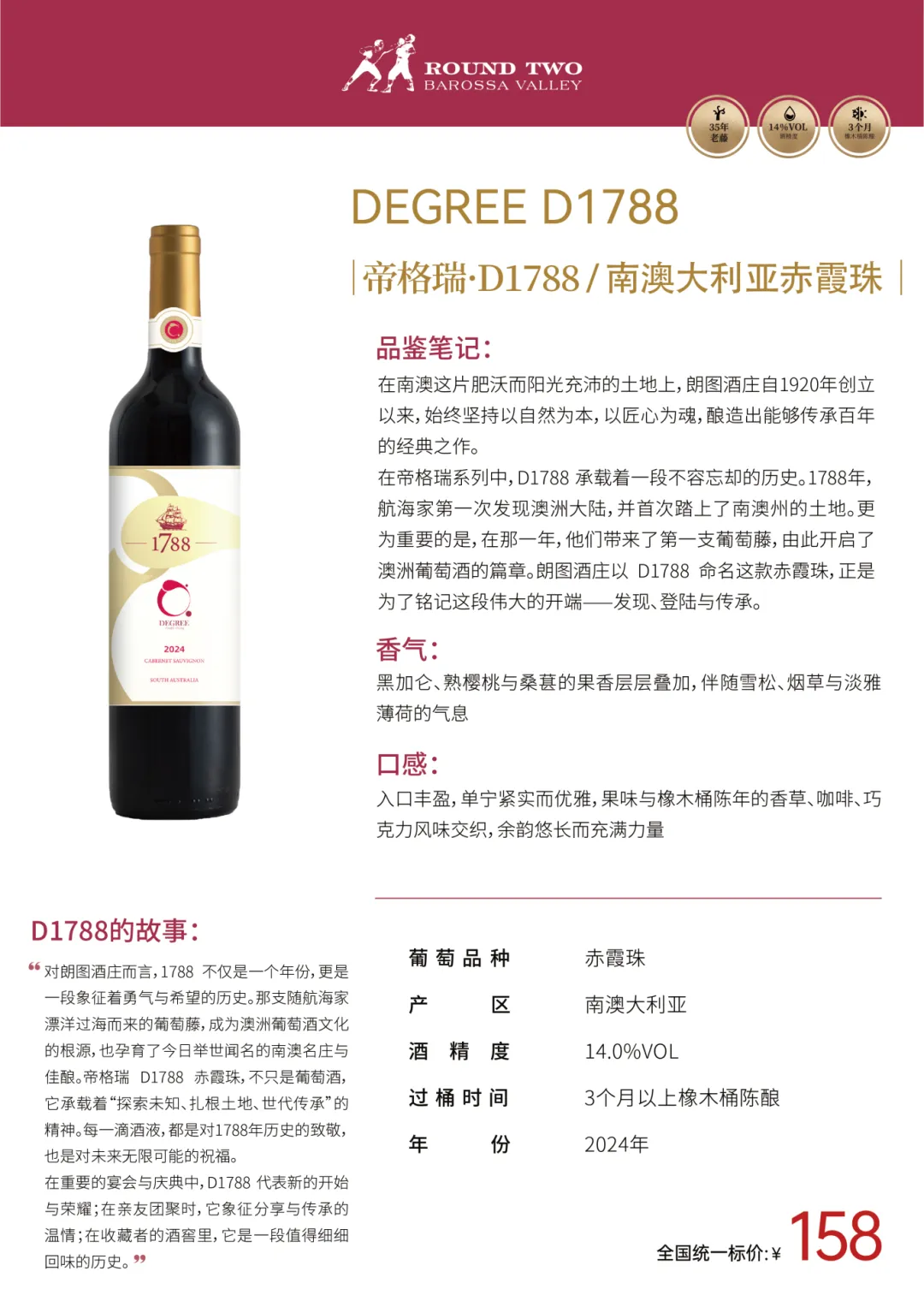 经过数十年的努力,ROUND TWO朗图已成为澳大利亚备受喜爱的葡萄酒品牌之一,也是澳洲各大餐厅首选的招牌酒。
