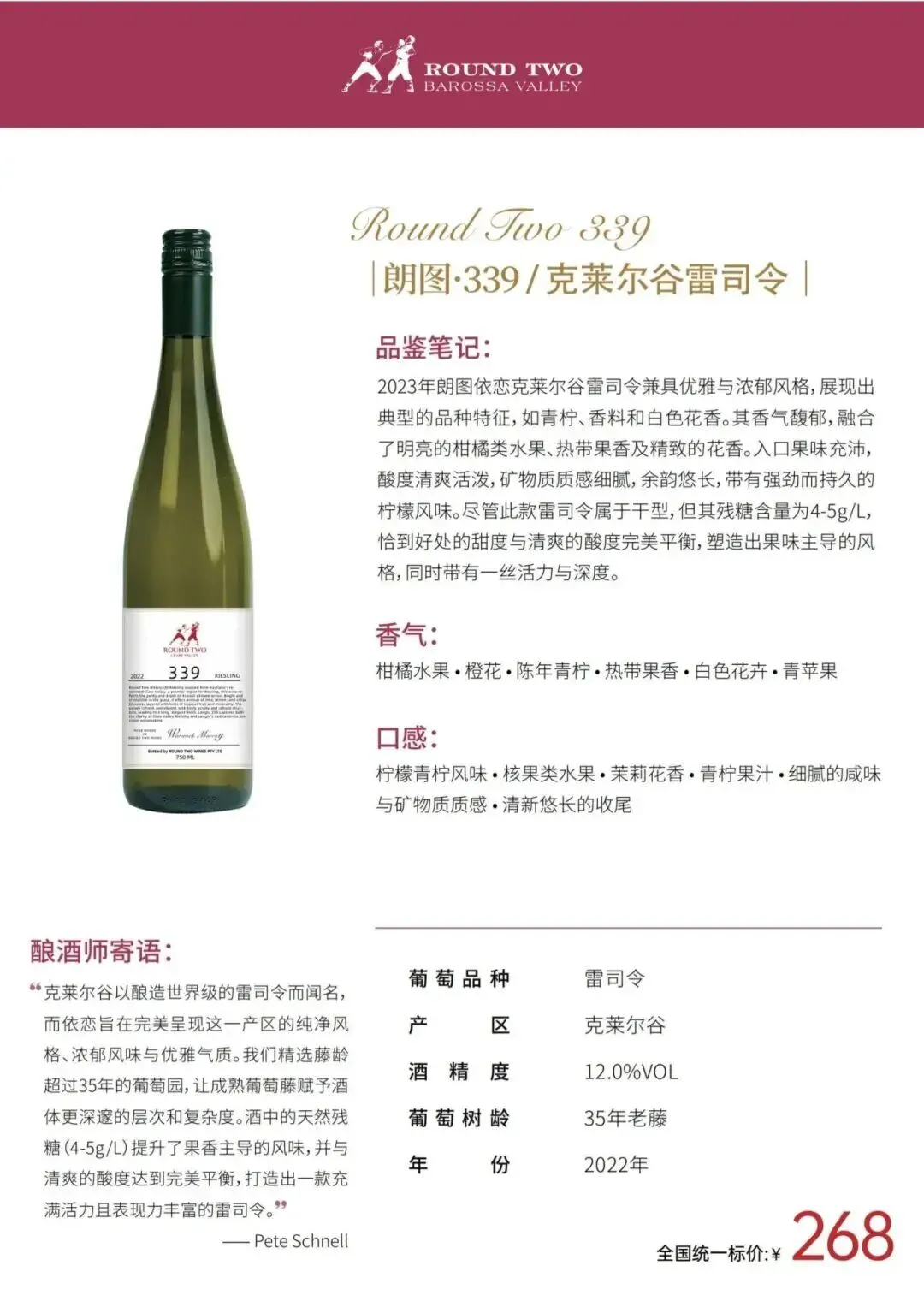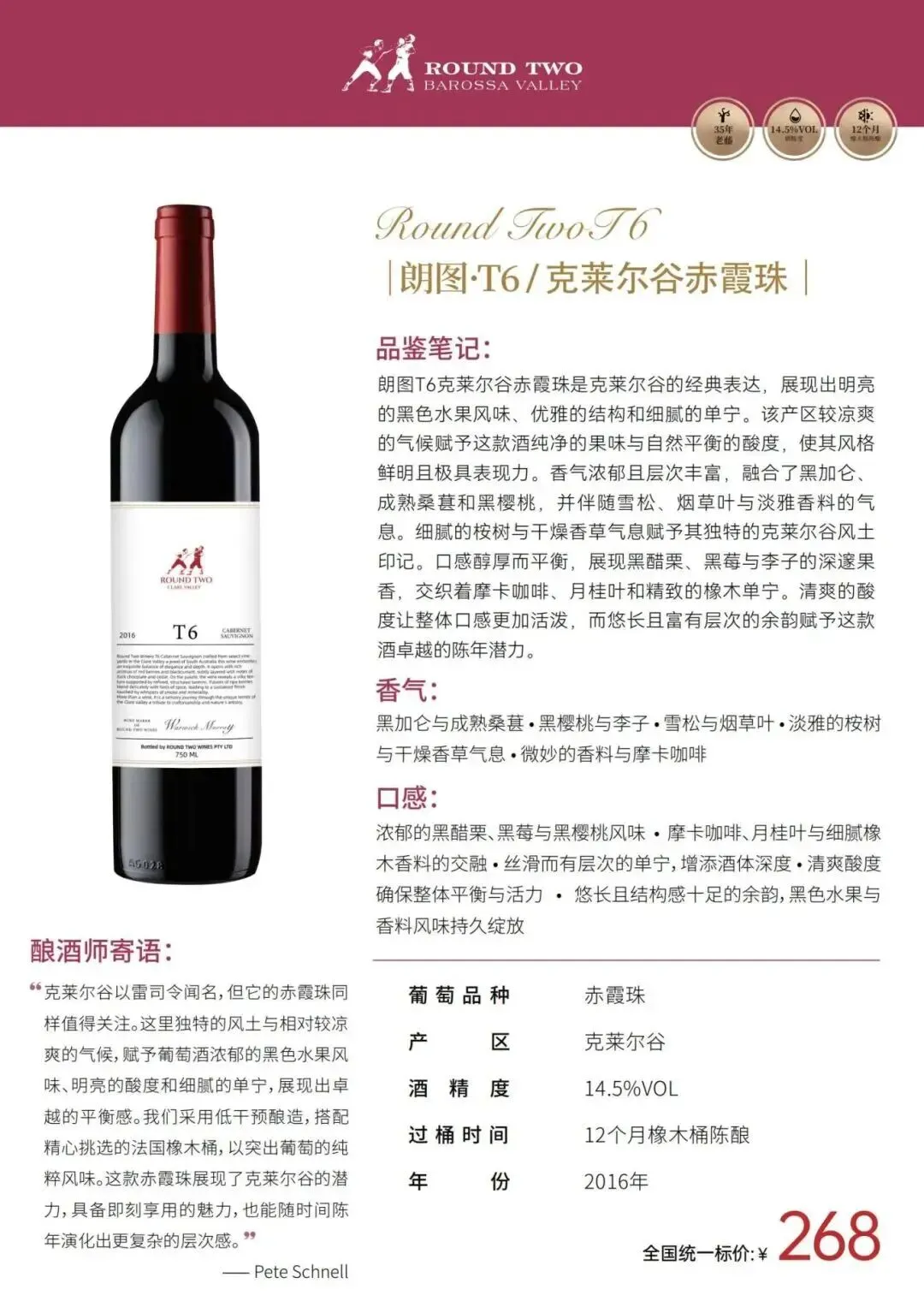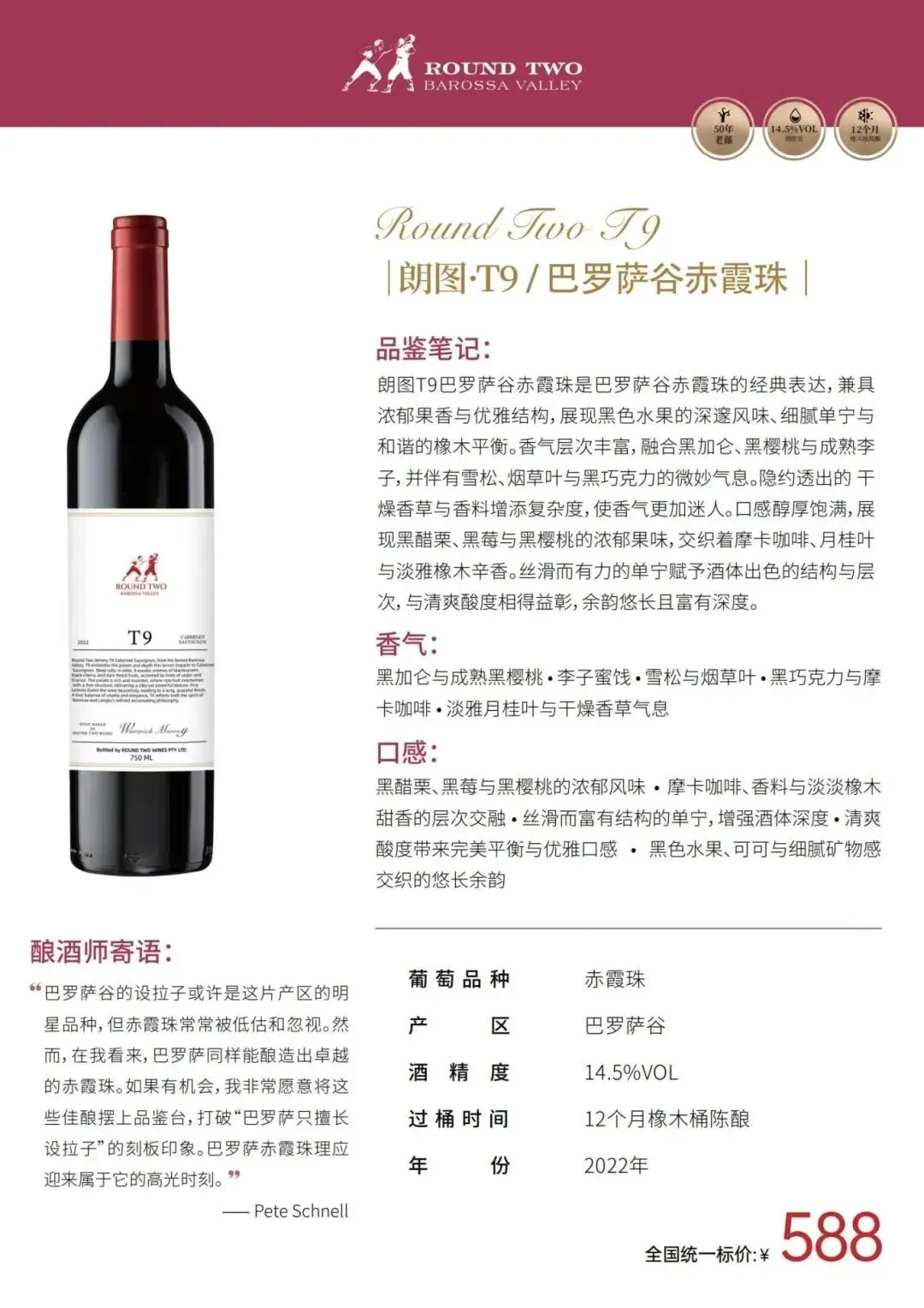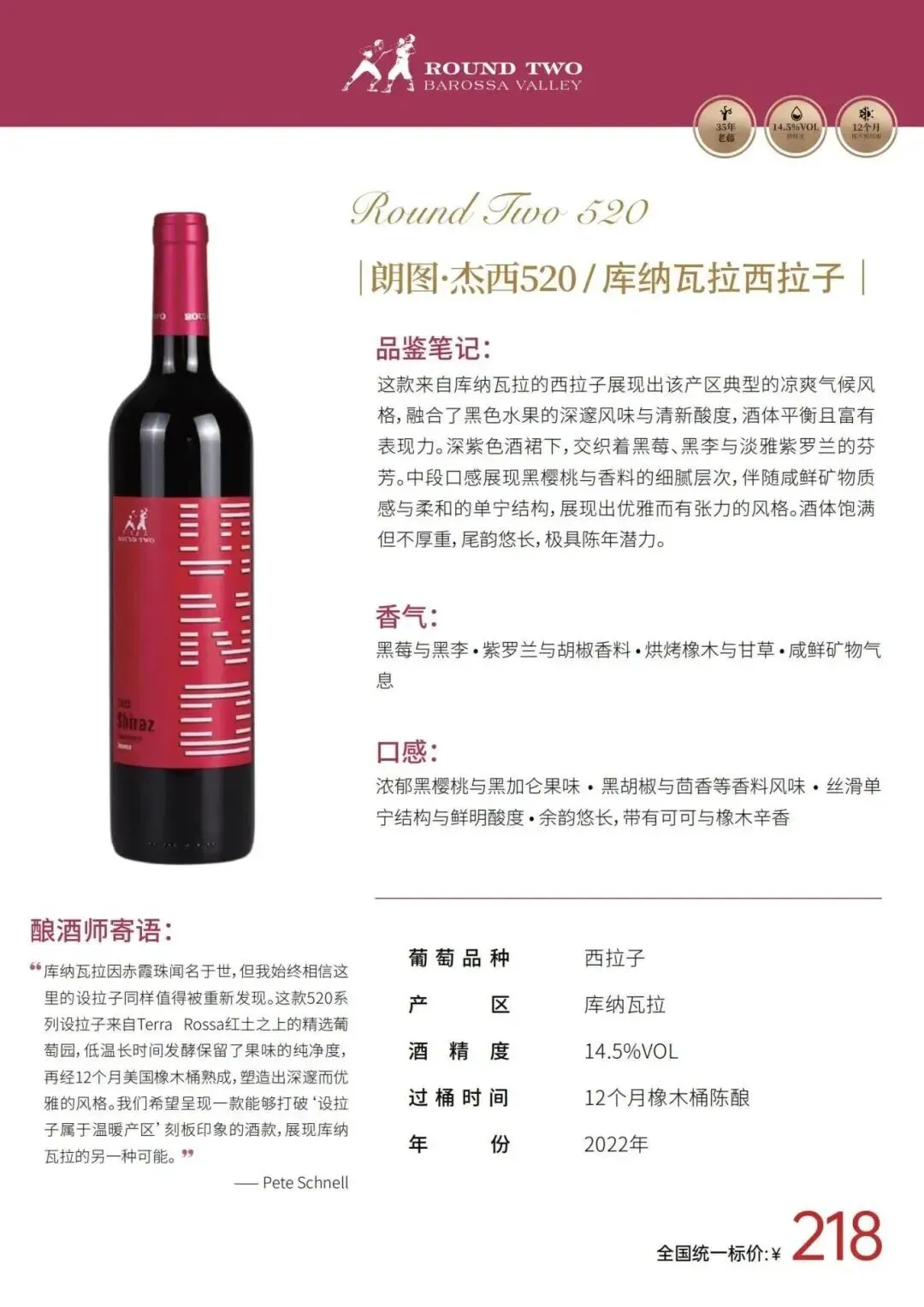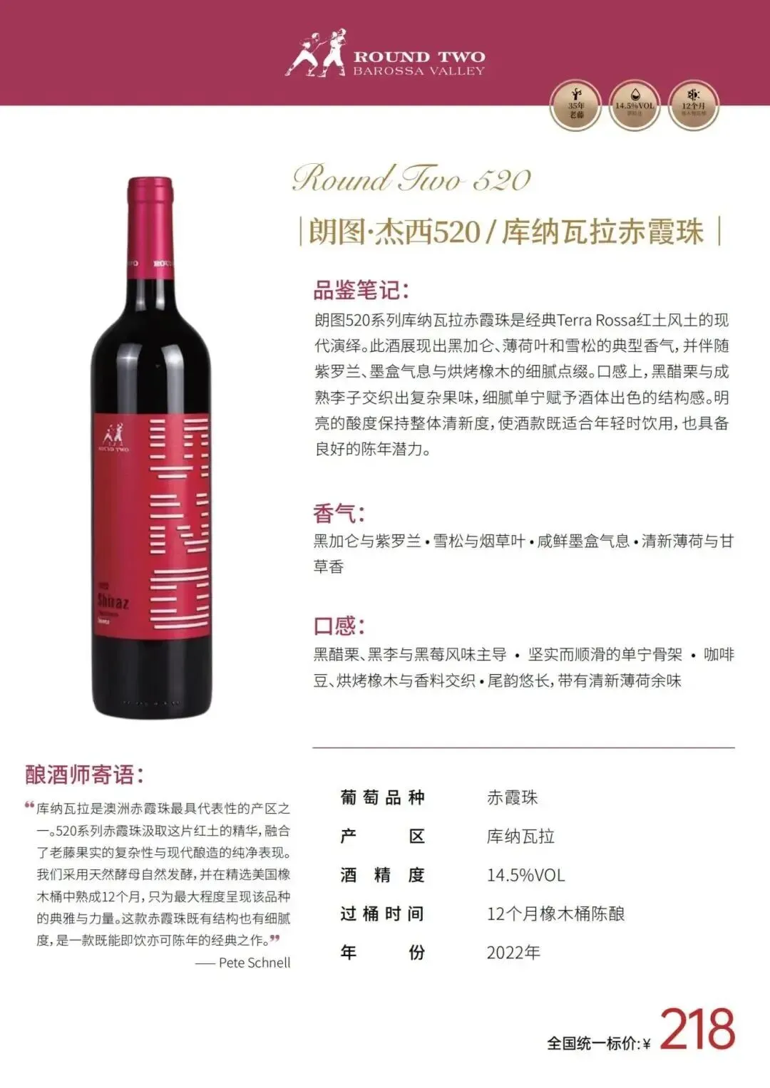 朗图系列(Round Two):中高端产品线,代表巴罗萨山谷的典型风格。
