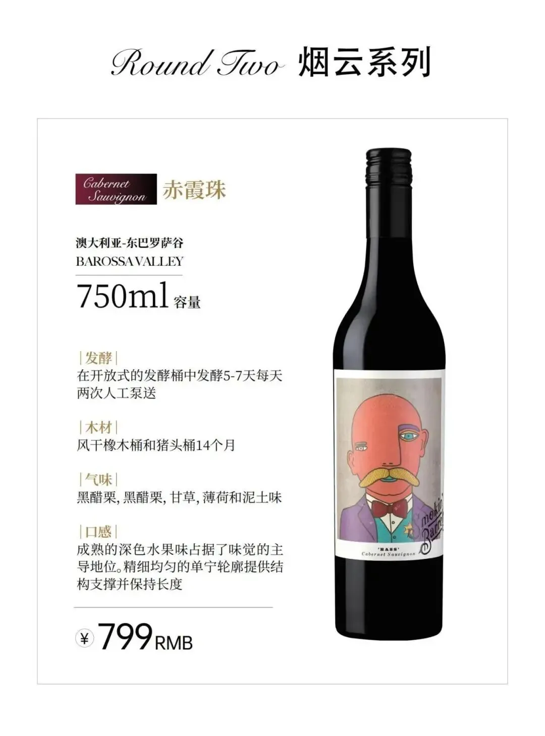 烟云(Smokin Barrels):顶级系列,产自老藤精选葡萄园,限量发行。