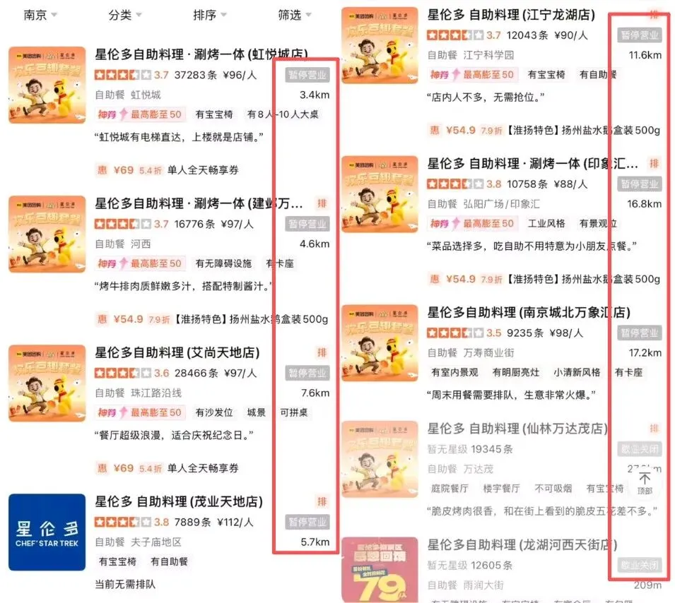 就在近日,有网友爆料:南京平价海鲜自助星伦多,多个门店“全部”关闭。