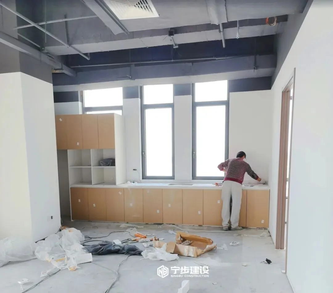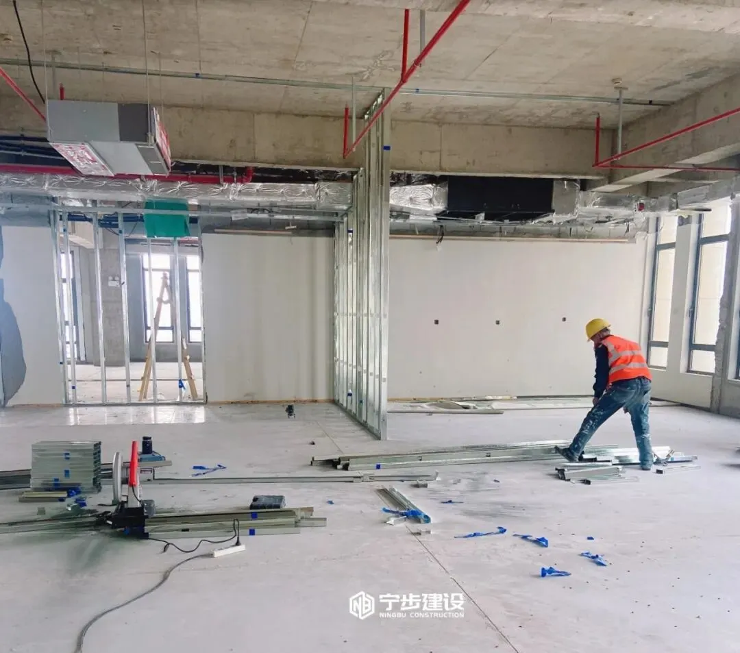 序章启幕,匠心为笔。江苏宁步建设承接的知名物流科技集团办公装修项目稳步推进,主体结构施工圆满完成,现已全面进入精细化收尾阶段,见证空间从毛坯到焕新的品质蜕变!