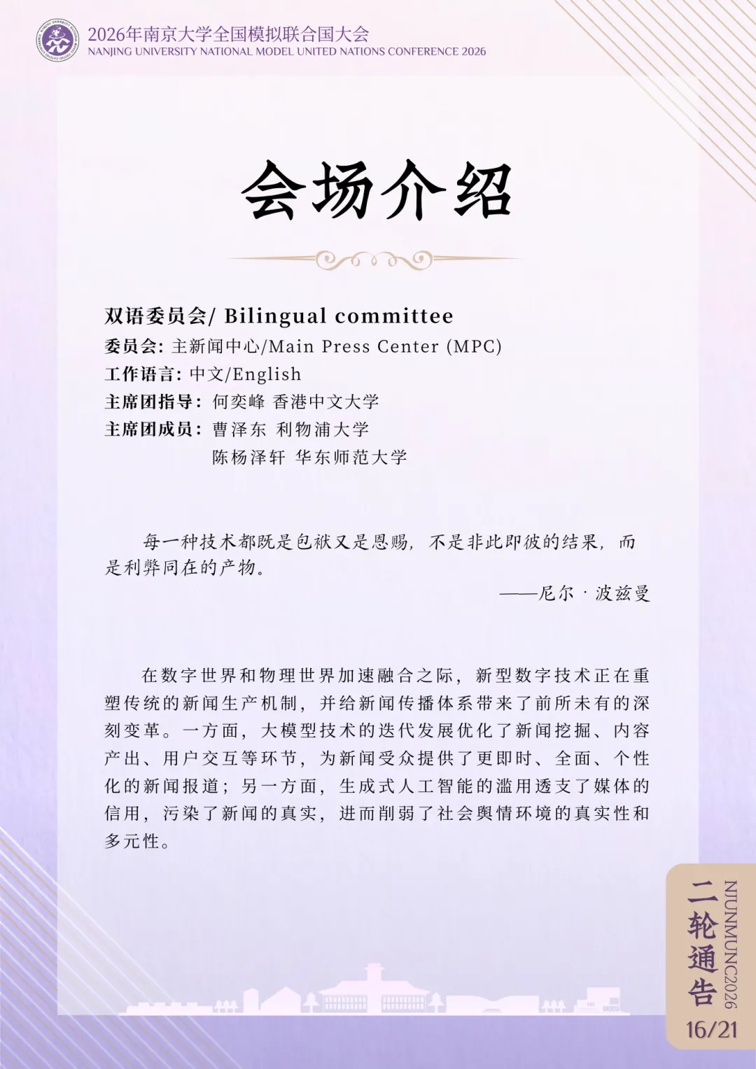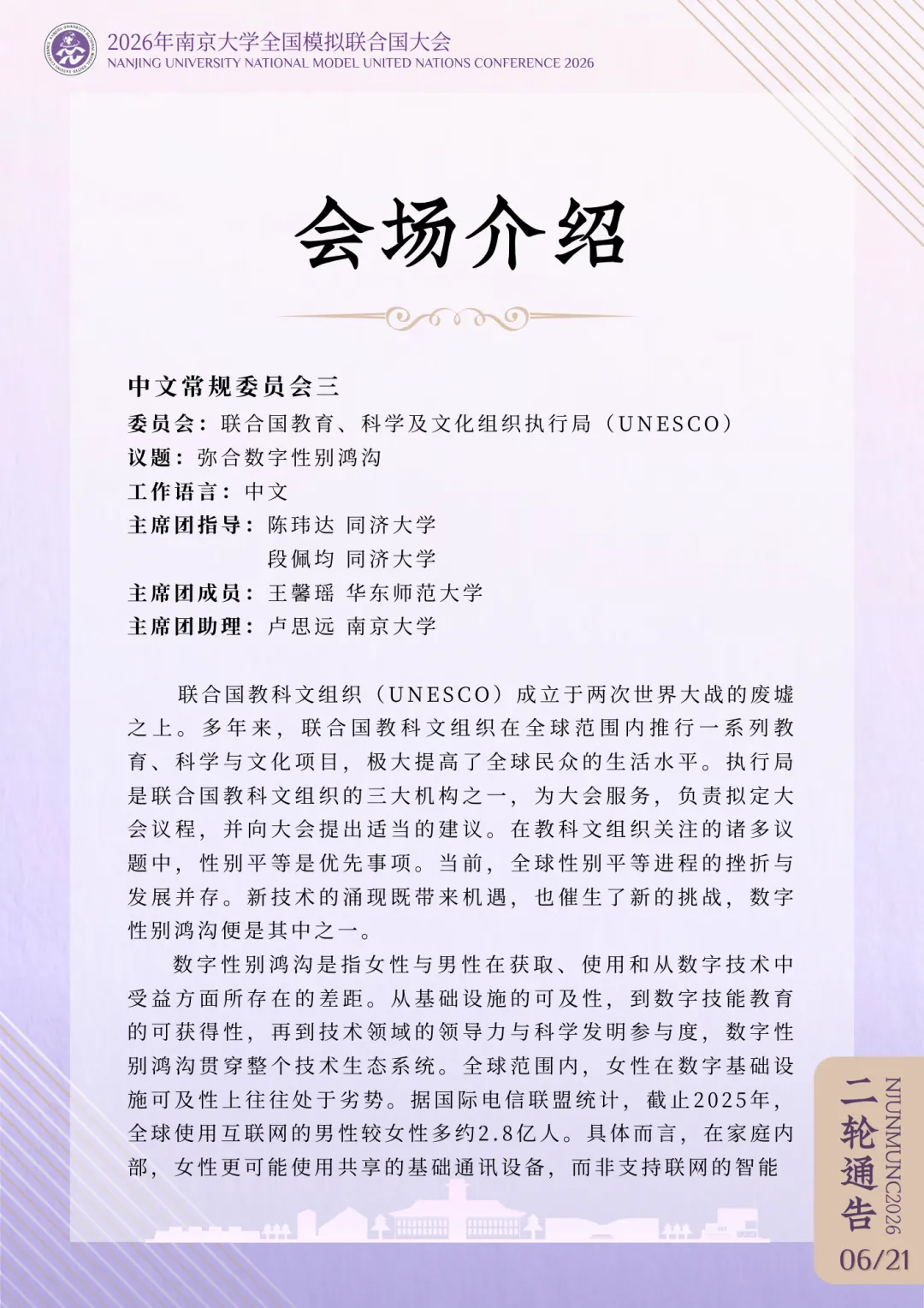 这是我第一次参加南大模联,也是第一次开常委。在联合国教科文组织会场,作为成员国代表,我深感荣幸能够为推动弥合数字性别鸿沟、宣扬女性力量贡献自己的思考与力量。