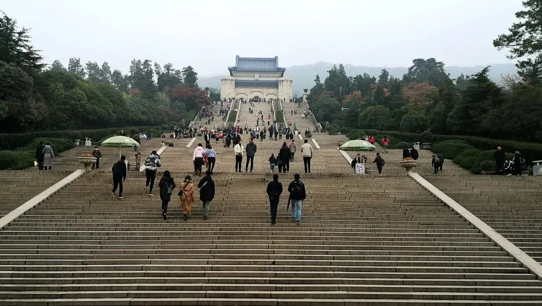 中山陵位于南京市玄武区紫金山南麓,前临平川,背拥青嶂,东毗灵谷寺,西邻明孝陵。建筑平面呈警钟形,取唤醒民众之意。整个建筑群依山势而建,由南往北沿中轴线逐渐升高。
