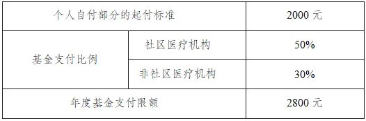 一个待遇年度内,享受完门诊统筹待遇后,继续发生的门(急)诊医疗费用,个人自付2000元以上部分,在社区医疗机构就诊的,基金支付50%,在非社区医疗机构就诊的,基金支付30%,年度基金支付限额2800元。