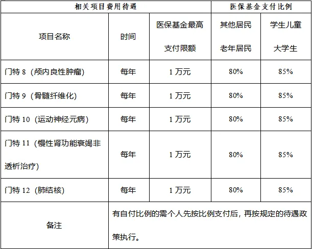 在定点医疗机构门诊发生的病种医疗费用,需个人先行支付的部分,由个人先按规定比例自付后,再按规定的待遇政策执行。其中,老年居民、其他居民基金支付比例为80%,学生儿童、大学生基金支付比例为85%。