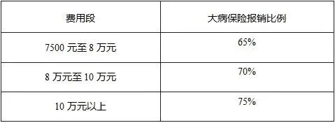 对符合条件的困难人员,大病保险起付标准降低50%(现为7500元),各费用段报销比例提高5%。