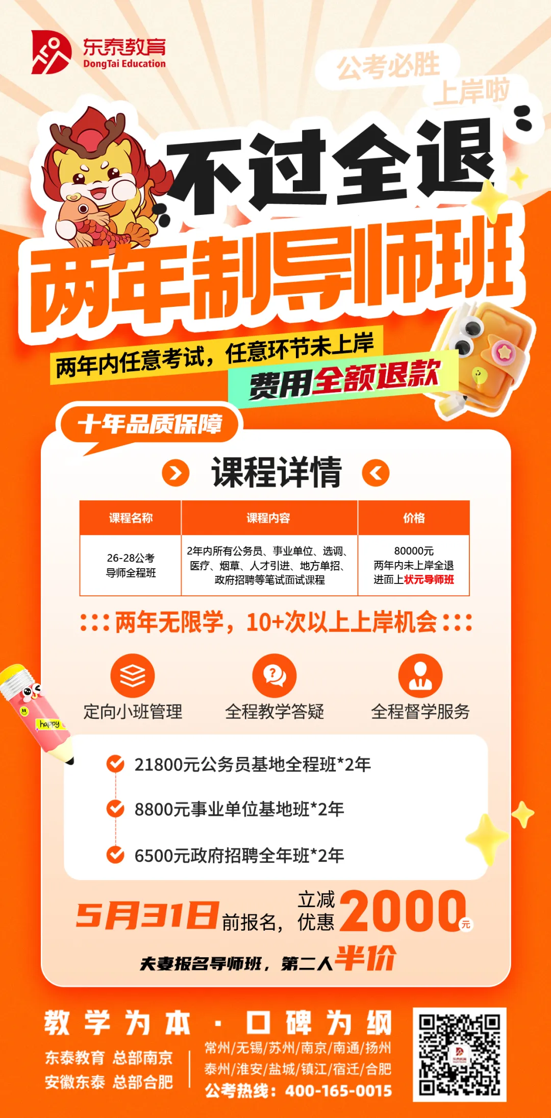 东泰为各类考生准备了专业化、系统化的辅导课程:针对应届生、全职备考生的暑假班、基地班;