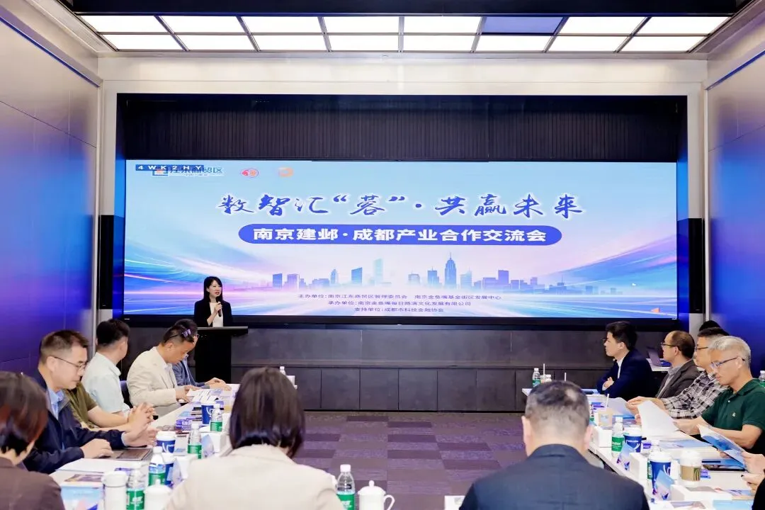 2026年4月9日下午,以“数智汇‘蓉’·共赢未来”为主题的南京建邺·成都产业合作交流会在成都高新区中海OFFICEZIP路演厅圆满举行。本次活动由南京江东商贸区管理委员会、南京金鱼嘴基金街区发展中心联合主办,成都市科技金融协会、COOC中海商务支持,旨在推动南京与成都在数字经济、人工智能、金融科技等前沿领域的深度合作,搭建两地企业与资本高效对接的平台。