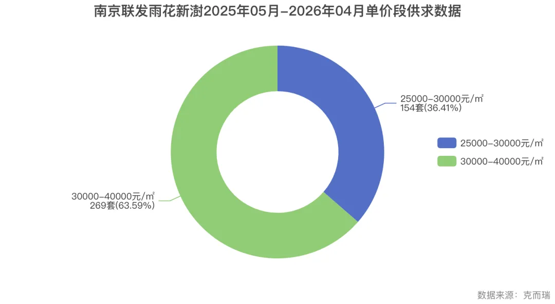 解读:据克而瑞数据,联发雨花新澍的成交主要集中在30000-40000元/㎡区间,占比高达63.6%,这与项目主流户型的定价策略相符,显示出市场对其中高端改善定位的认可。