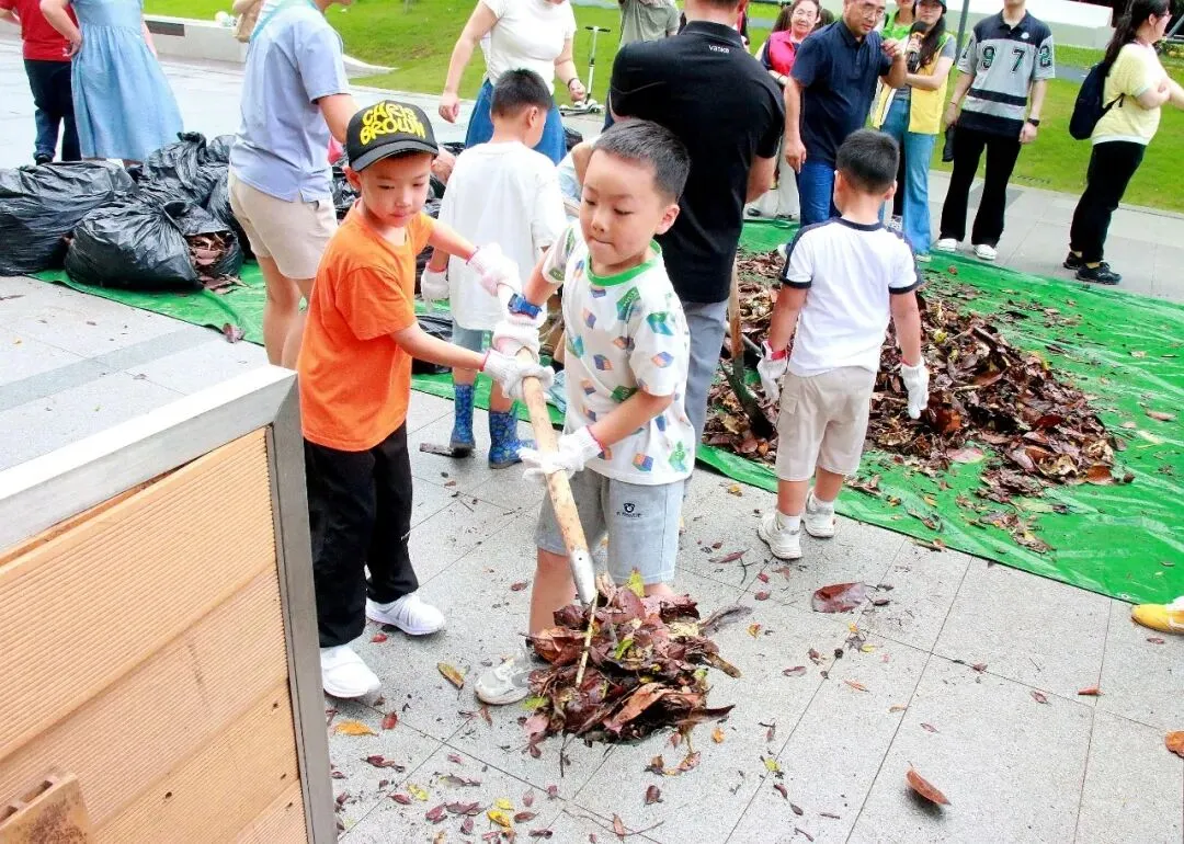 一层落叶、一层厨余,再一层落叶、一层厨余……在洪蓝中心幼儿园,这种简单的堆肥方式成了孩子们最爱的“自然课”。老师带着孩子们把食堂的菜叶、餐后的水果皮收集起来,和校园里的落叶、树枝碎混合,一层层铺进堆肥箱。