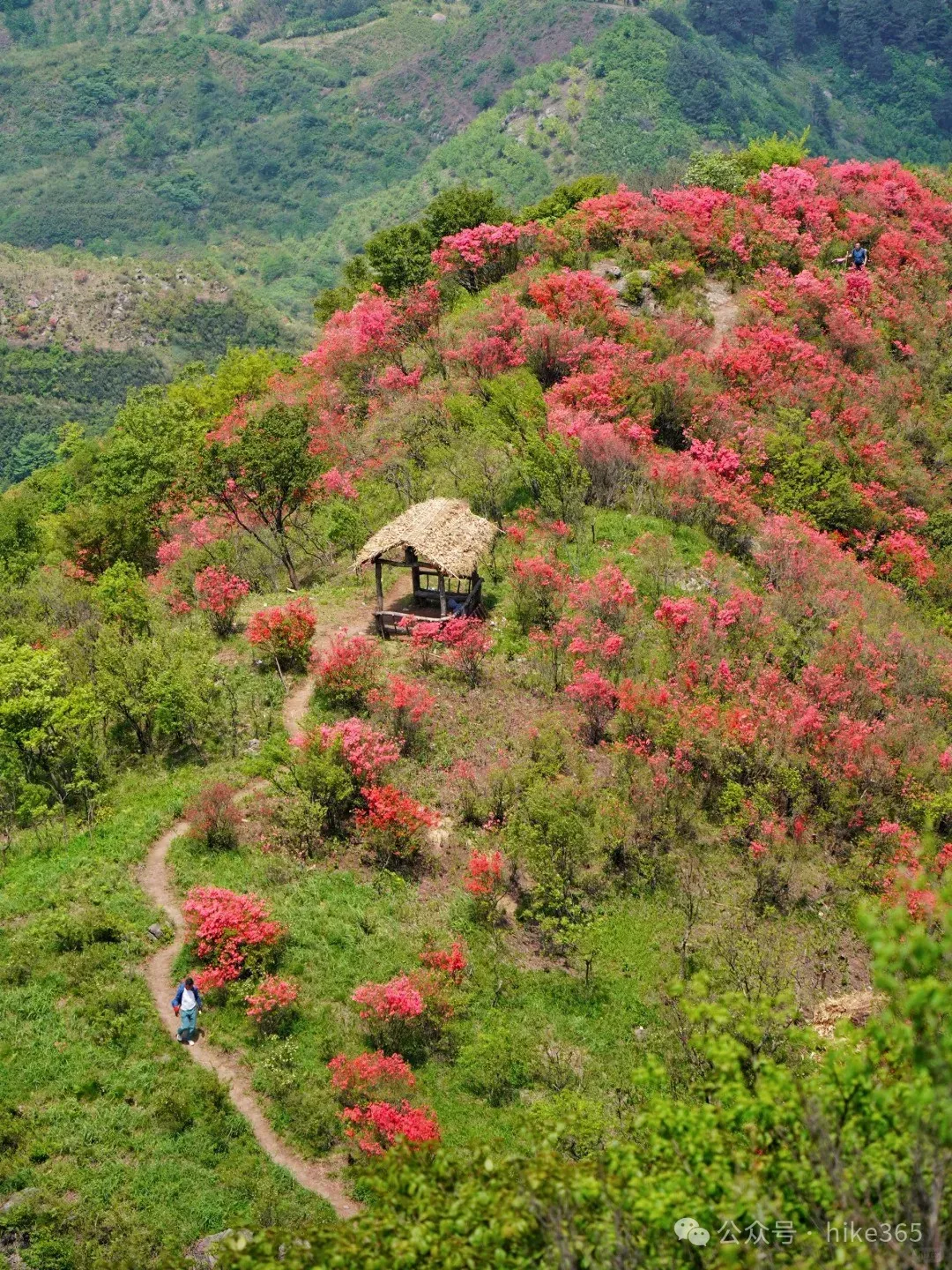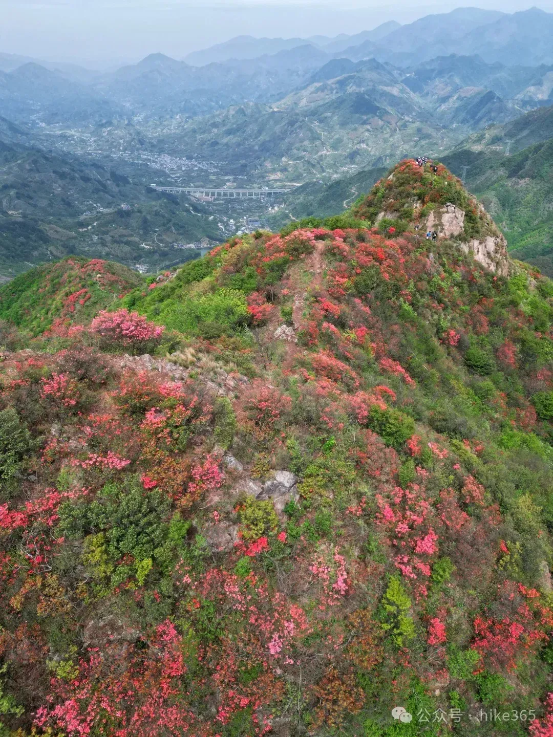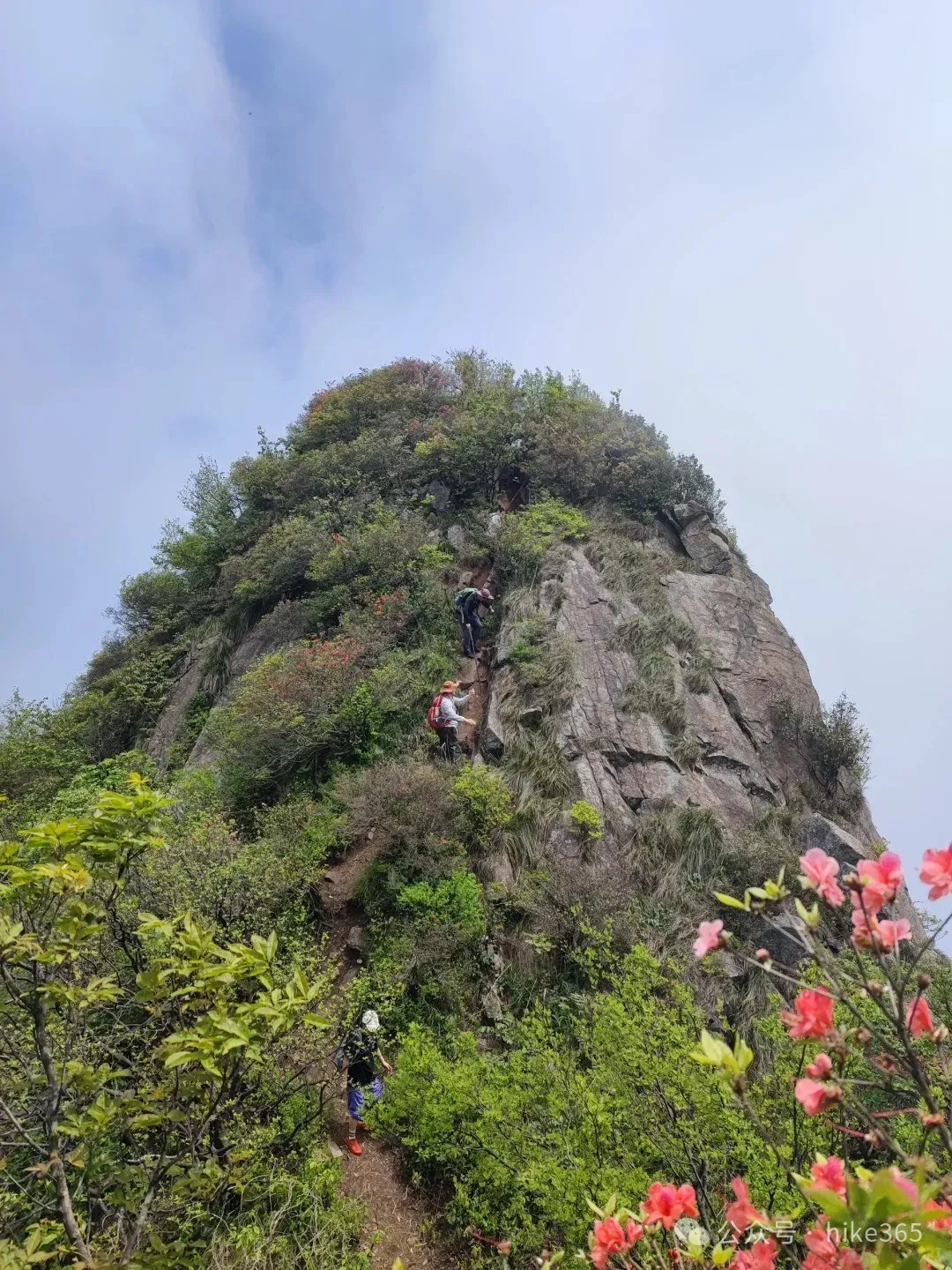 ▶汤公山美女峰:位于汤公山山脊线上,视野非常好,周边大片聚集的杜鹃花,粉色、红色、紫色都有;