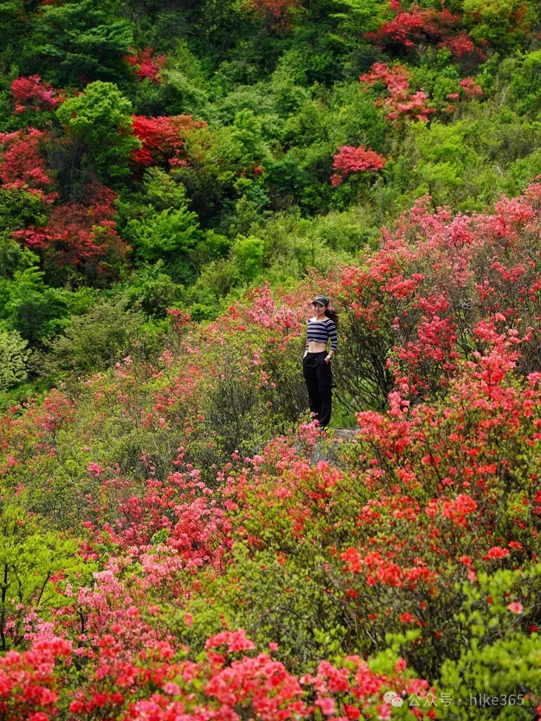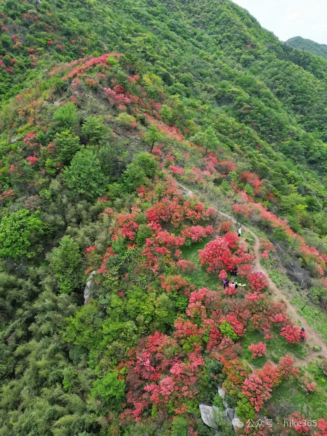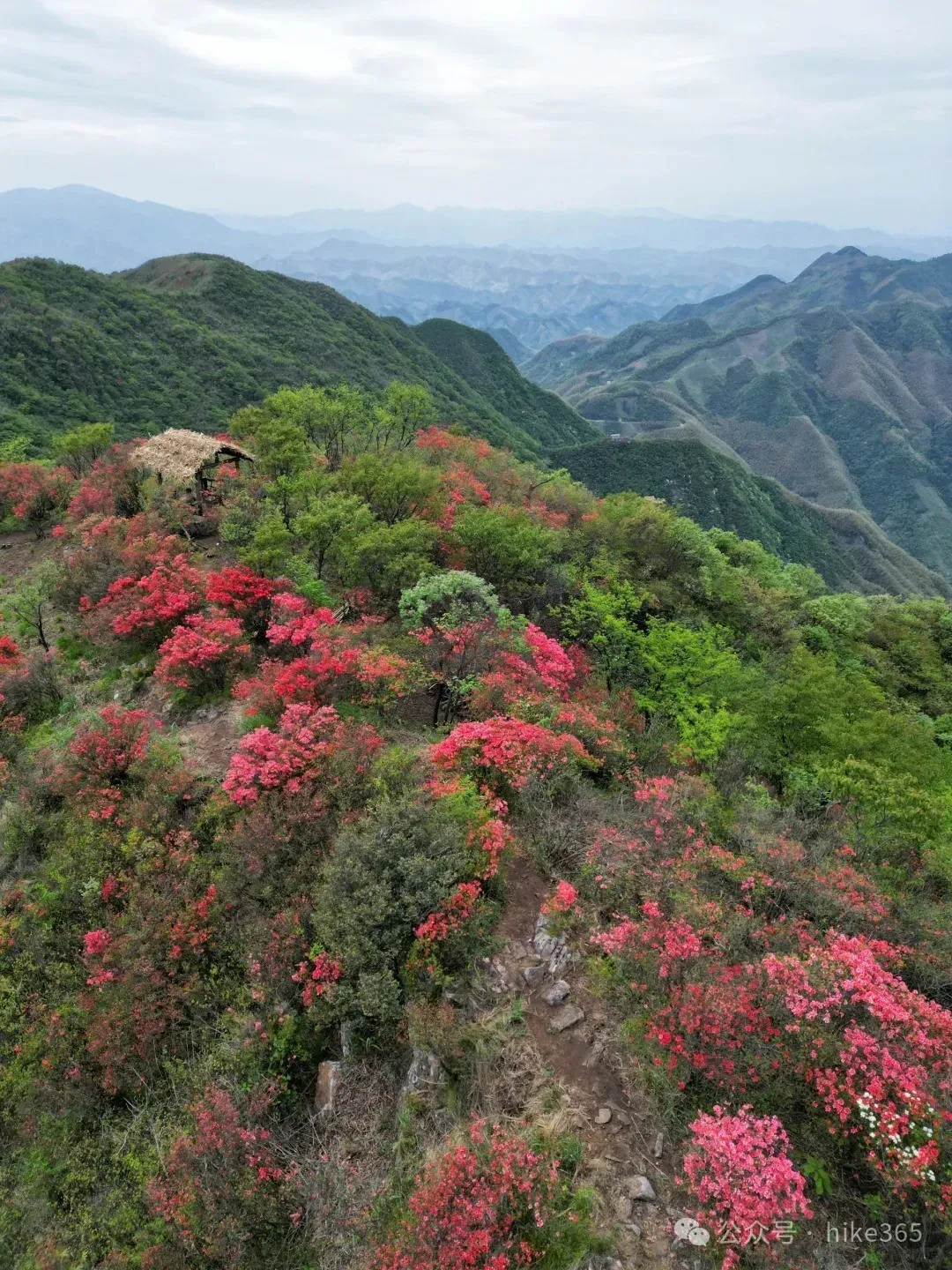 ▶汤公山美女峰:位于汤公山山脊线上,视野非常好,周边大片聚集的杜鹃花,粉色、红色、紫色都有;