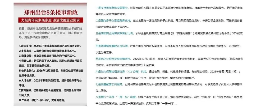 全国政策:4月10日,郑州发布8条稳楼市新政,包括支持青年群体安居置业、强化多子女家庭购房支持、优化公积金贷款申请条件等。