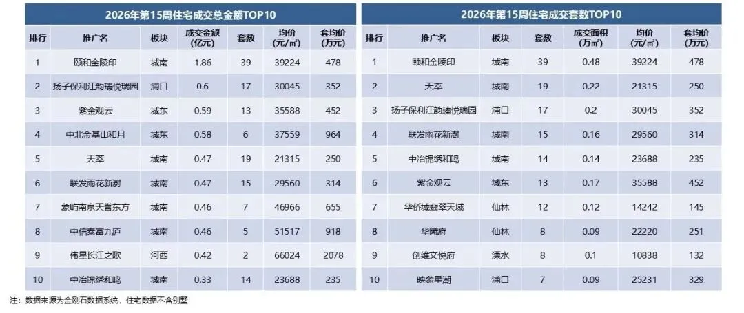 项目排行:本周颐和金陵印为本周成交金额、成交套数TOP1。