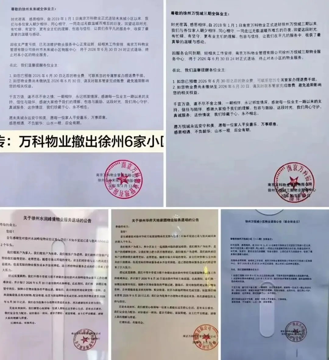 上述小区的物业服务中心均定于2026年6月30日24时正式终止服务。业主需在期限内完成物业费的退缴等事宜。