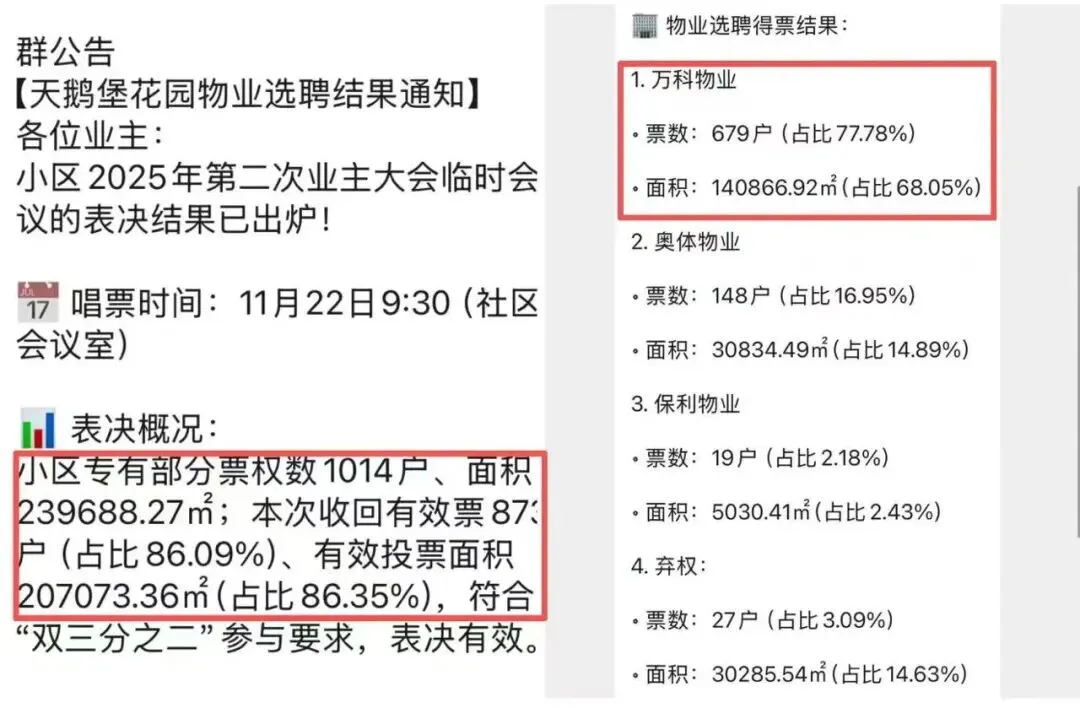 2025年,河西华侨城天鹅堡更换物业公司。经过多轮公开选聘,万科物业获得77.78% 的赞成票,在多家竞聘企业中胜出,进驻该小区。
