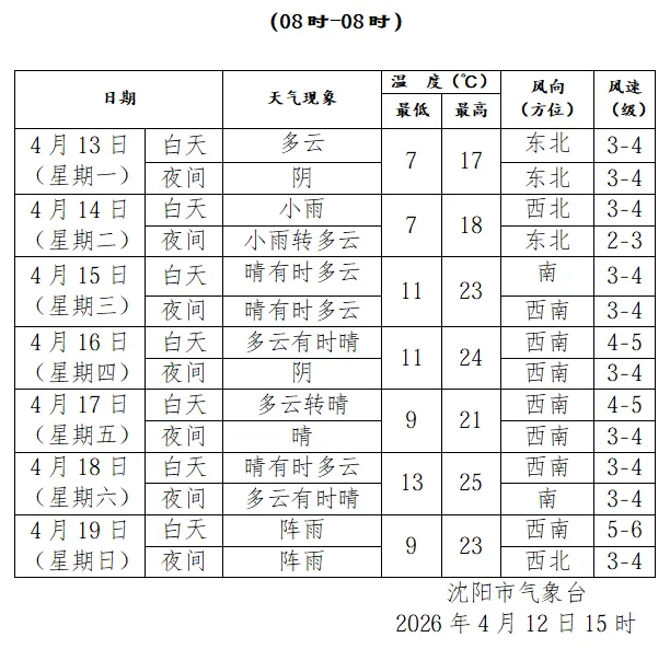 今天,沈阳北部、阜新、铁岭地区多云转分散性阵雨。