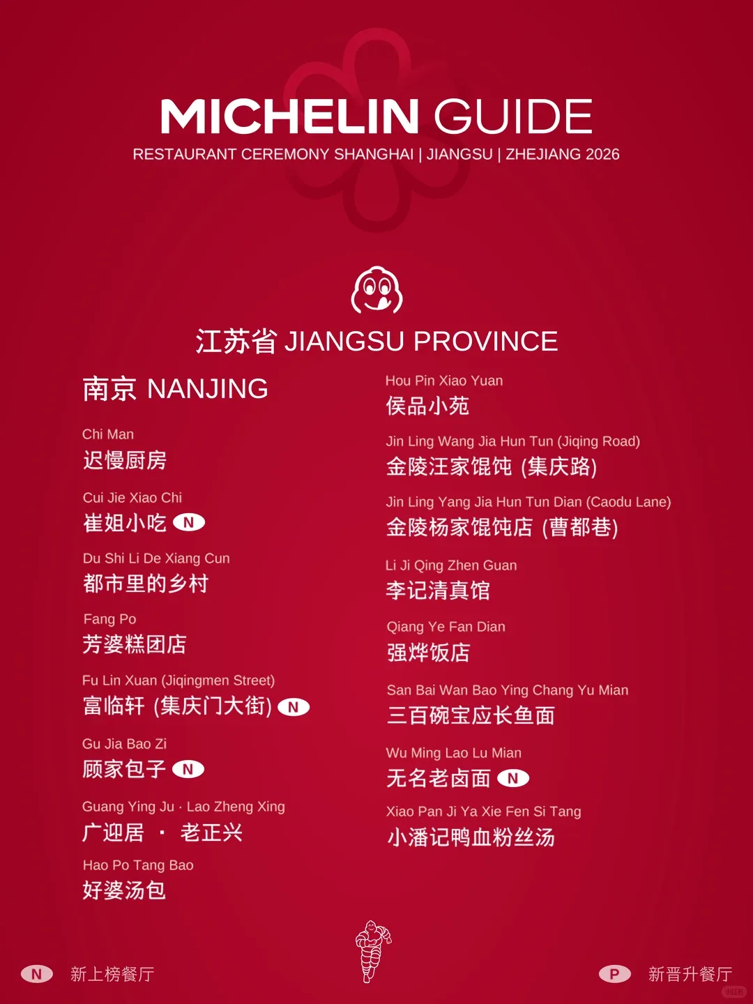 南京共有21家必比登推介餐厅。