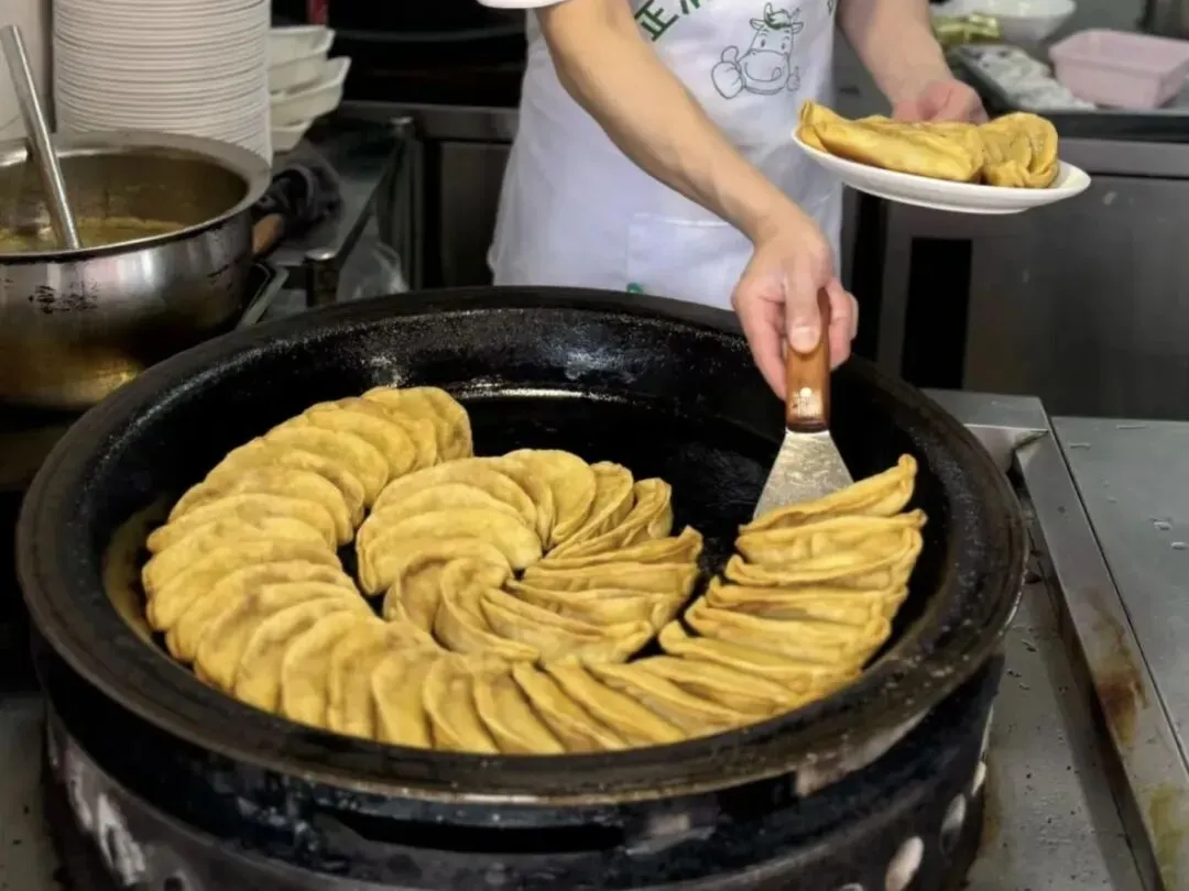 招牌牛肉锅贴个头不算大,但外壳焦脆,肉馅饱满,一口咬下去汁水四溢。