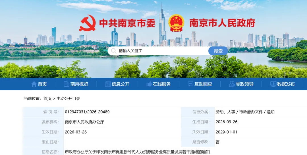 南京市促进新时代人力资源服务业高质量发展若干措施