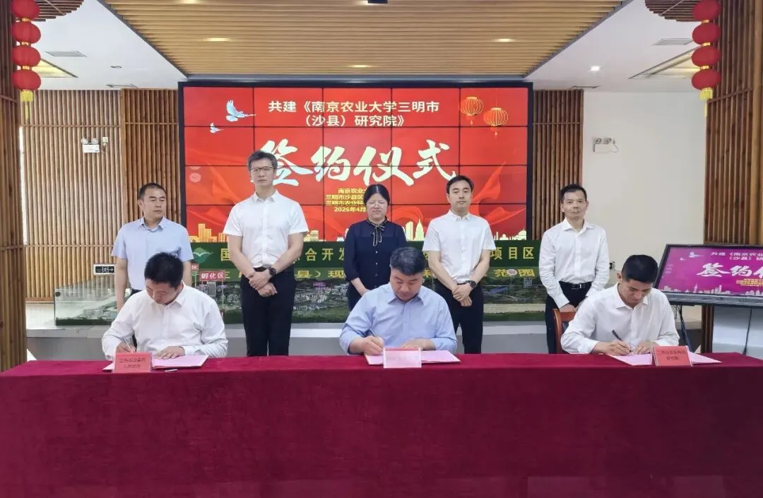 4月11日上午,南京农业大学三明(沙县)研究院揭牌仪式在三明国家农业科技园区顺利举行,我院与南京农业大学、沙县区人民政府三方联合签署《2026年度校地合作事项清单》,正式开启校地深度协作、平台化发展的全新阶段。南京农业大学党委常委、副校长冯淑怡,三明市委常委、副市长胡帅、沙县区委副书记、区长吴晓峰、沙县区政府副区长熊纬辉,我院党组书记吴江潮,院党组副书记、院长杨德卫参加活动。