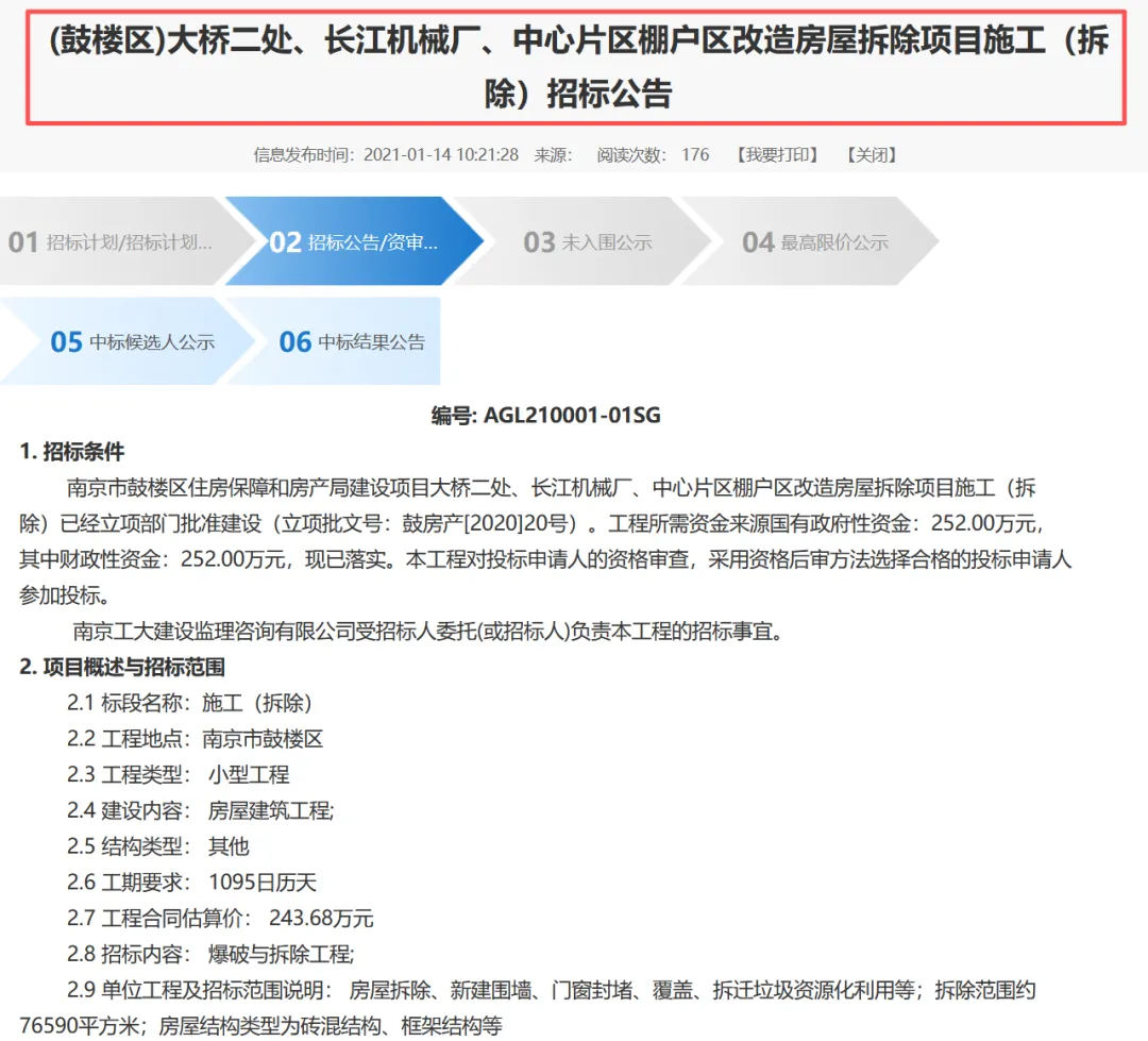 2021年,官方再次发布棚户区施工招标,拟对范围内房屋建筑进行拆除。