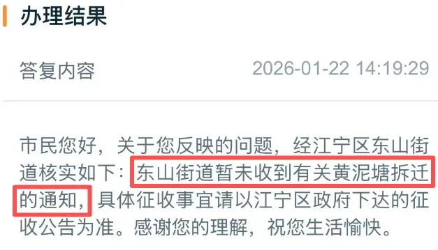 前不久,网友咨询片区有无拆迁计划,官方最