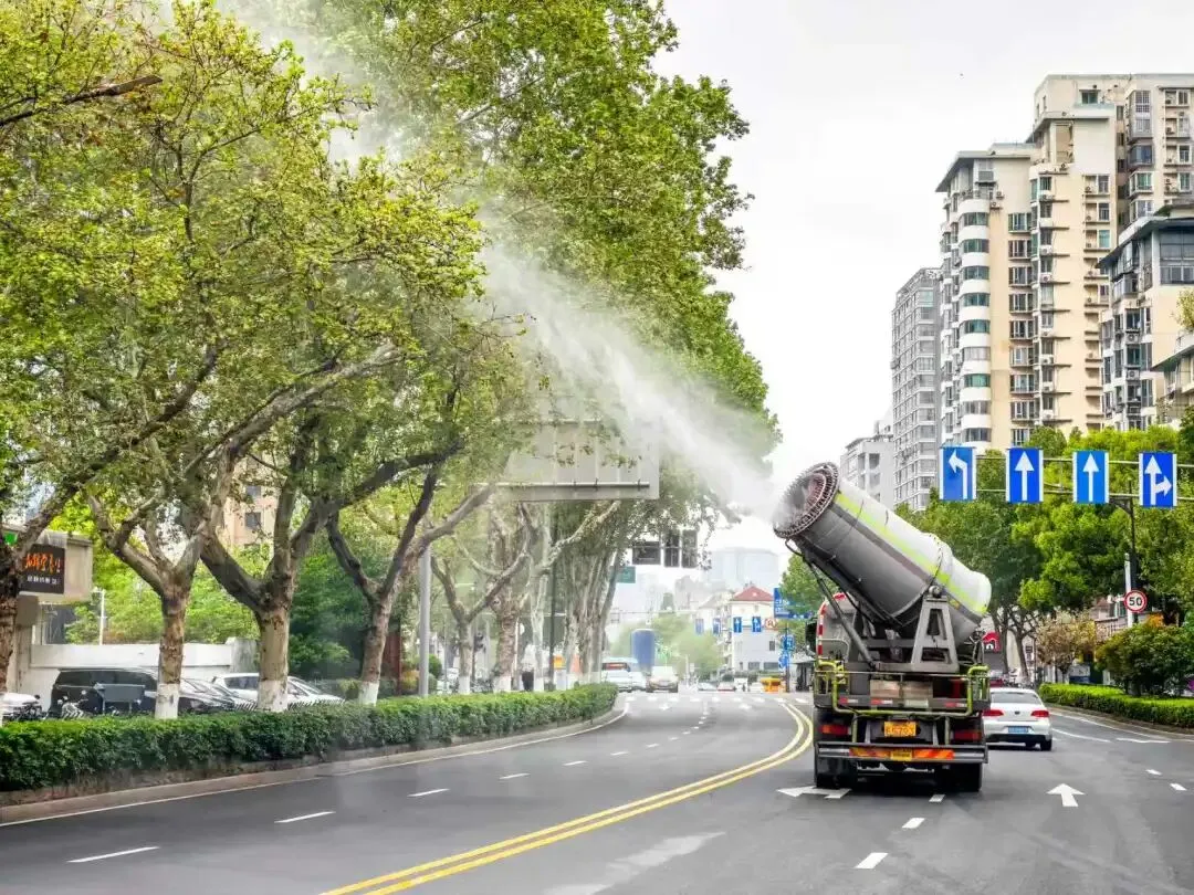 夜里同样不松懈。冲洗车先把路面飞絮冲到路边,再由机扫车收走。一套“立体组合拳”操作下来,空中少飞扬、地面不堆积,效果更明显。
