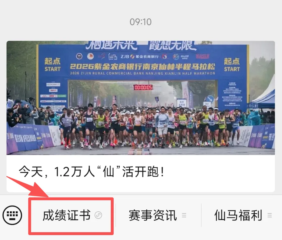 关注「南京仙林半程马拉松」微信公众号 → 底部菜单栏选择【成绩证书】。